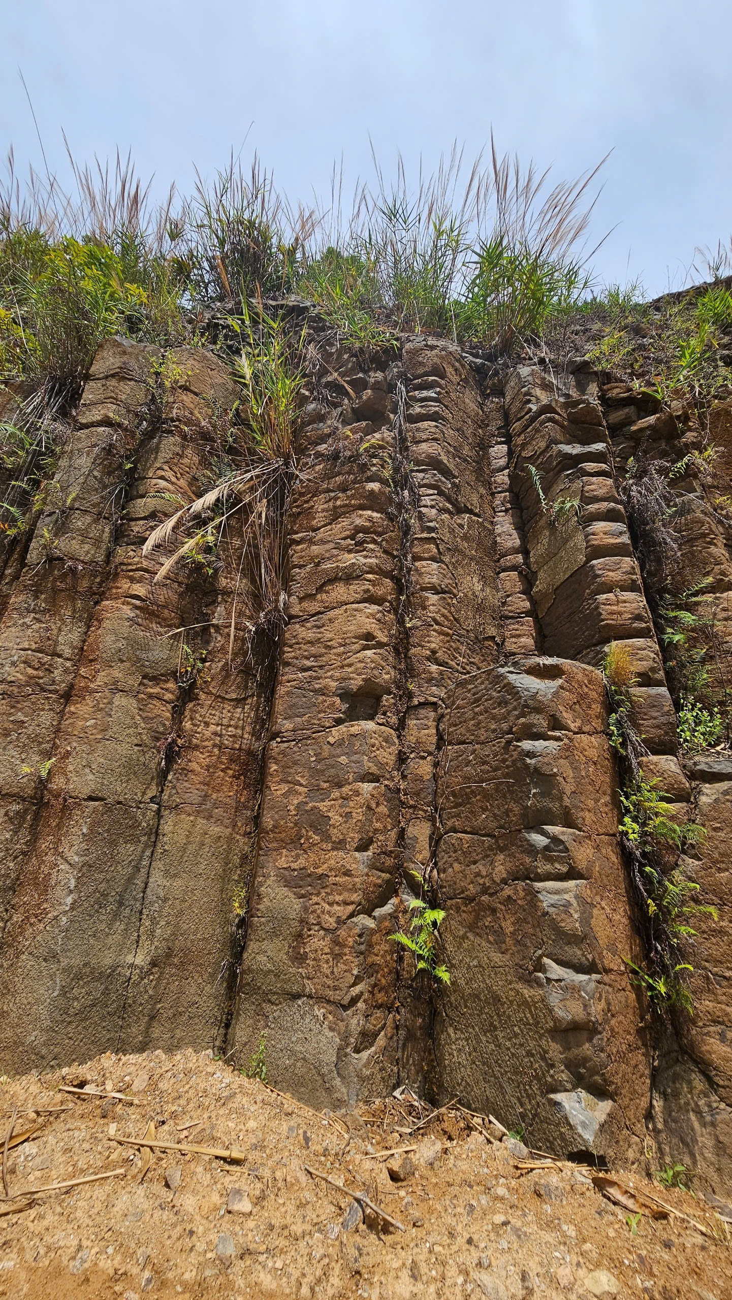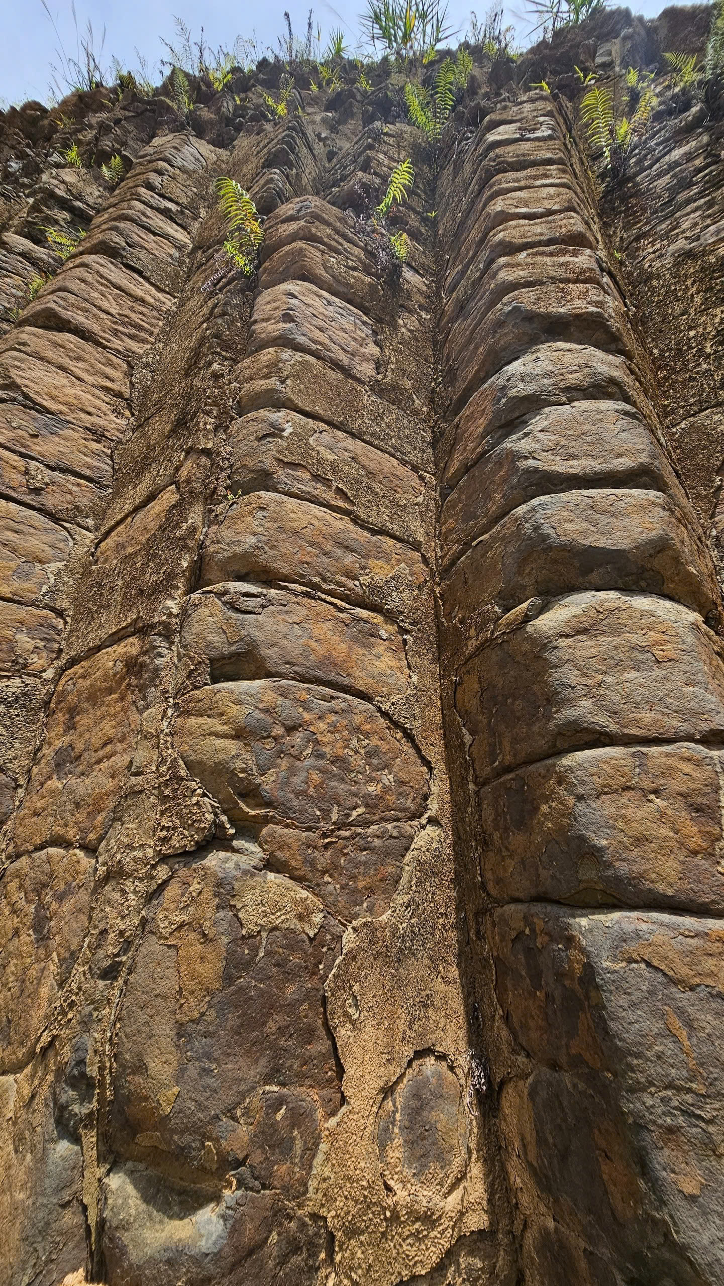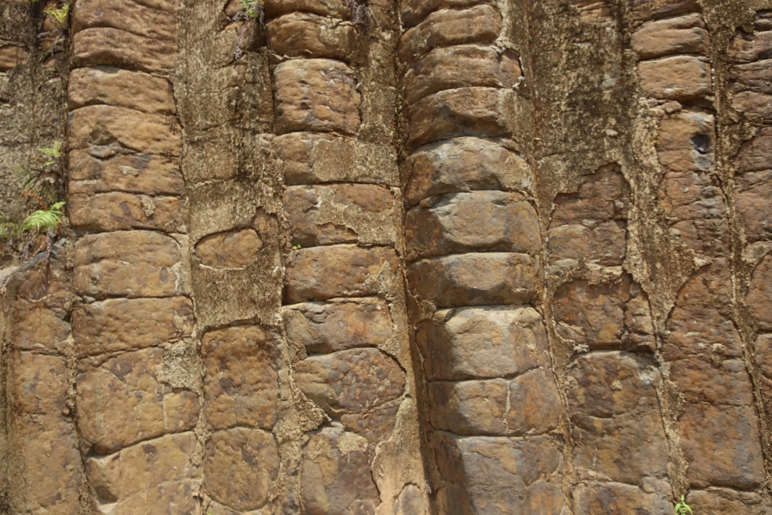 Các trụ đá dạng cột, chồng lên nhau, với mặt cắt hình tứ giác, lục giác hoặc tròn, đều tăm tắp giống như con người sắp xếp.