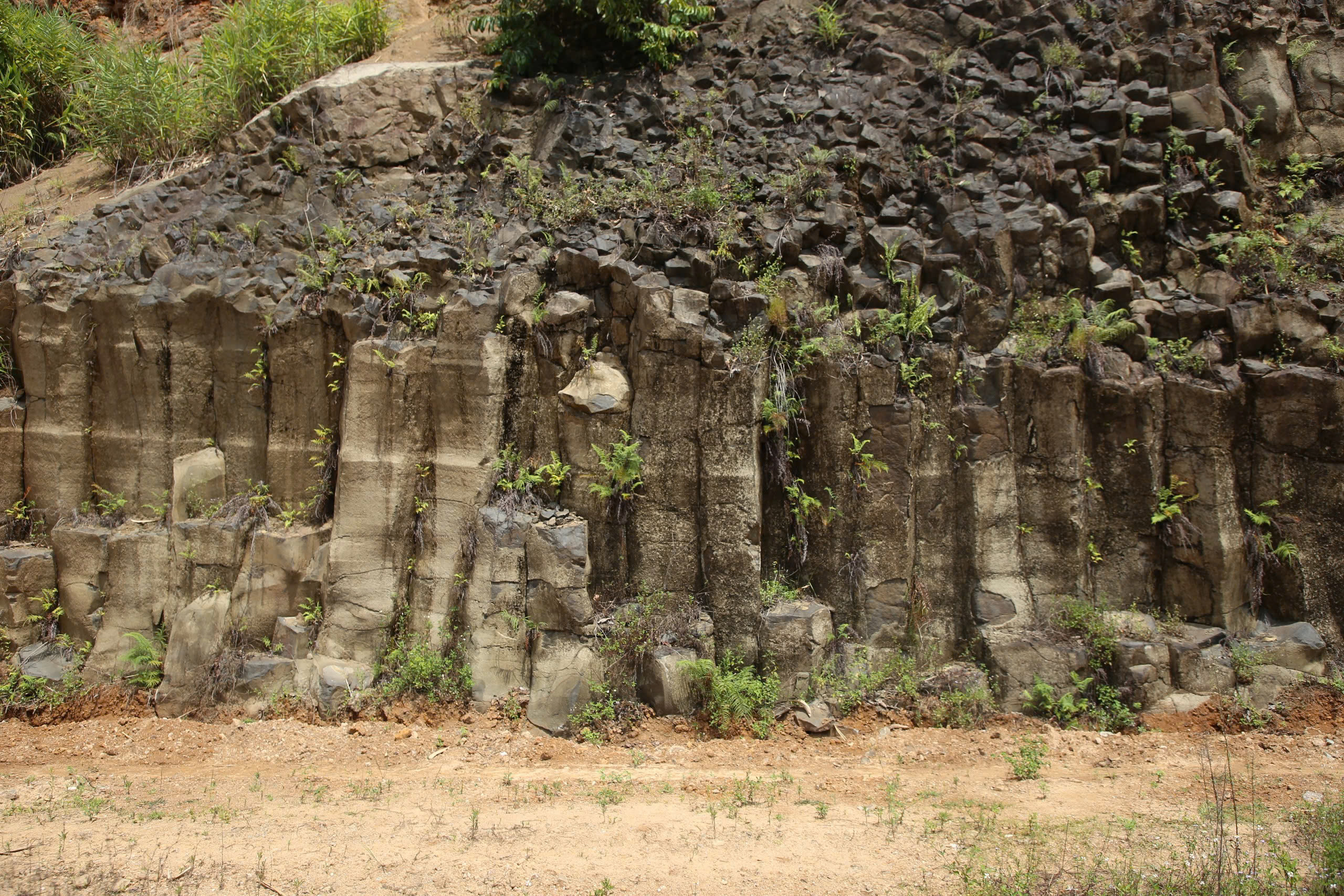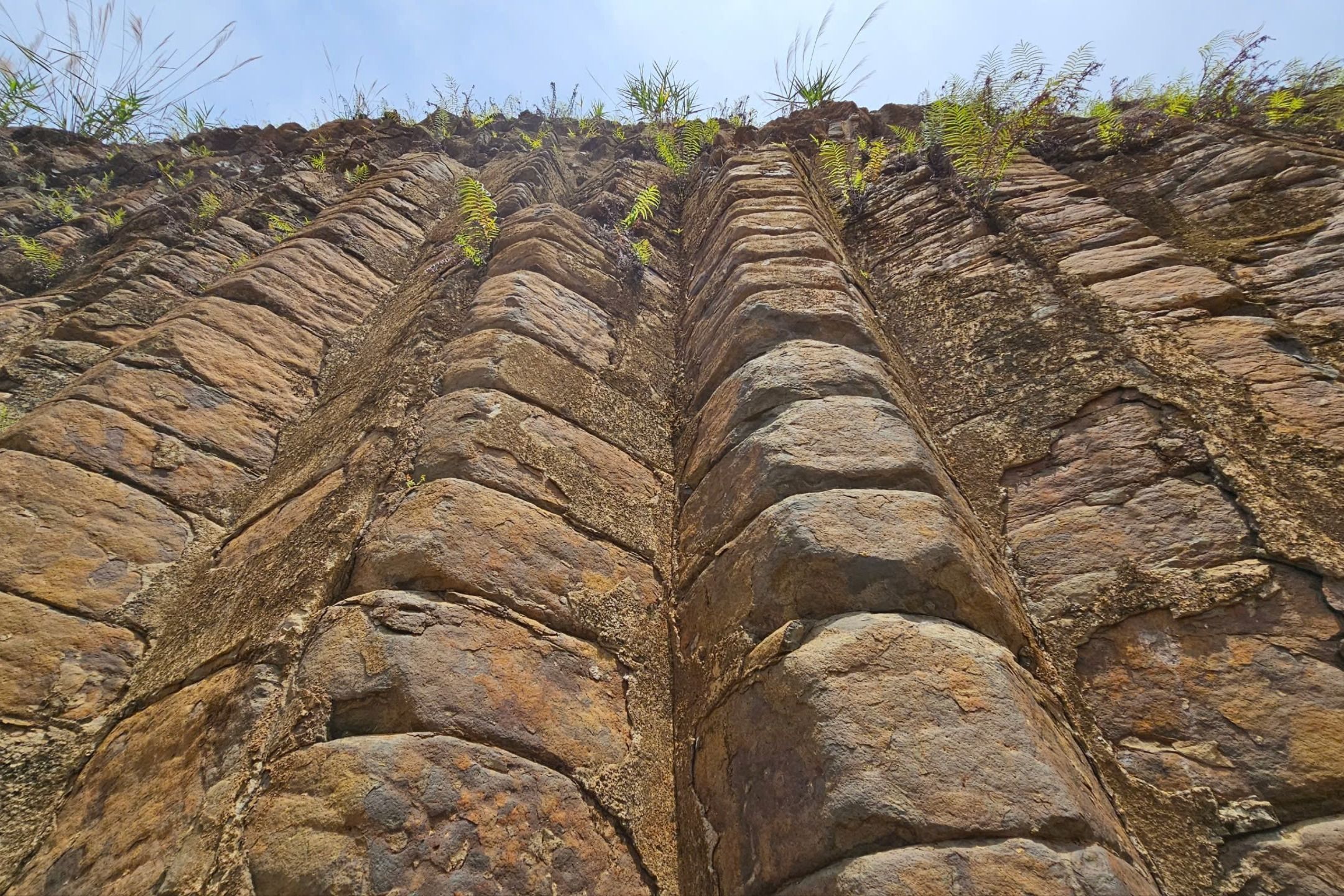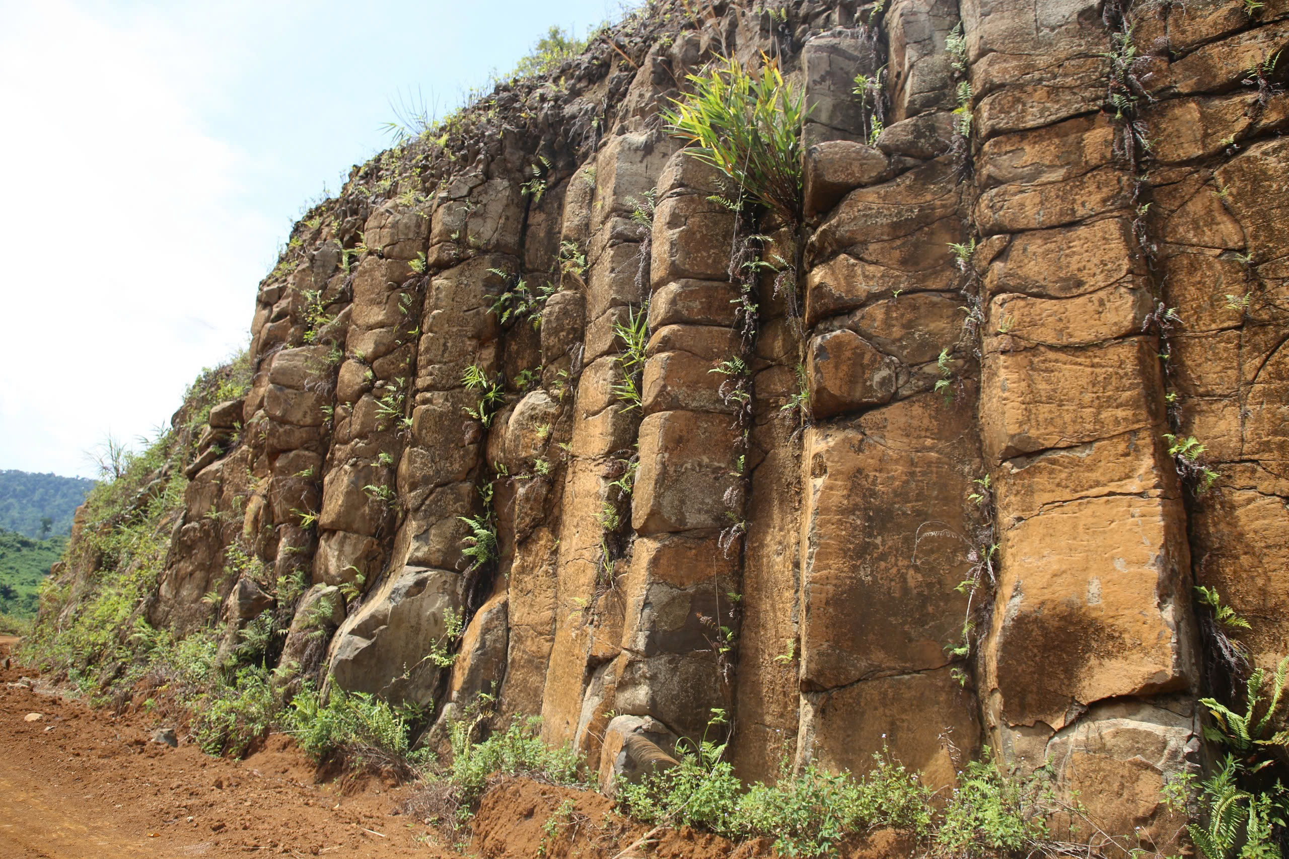 Các trụ đá dạng cột, chồng lên nhau, với mặt cắt hình tứ giác, lục giác hoặc tròn, đều tăm tắp giống như con người sắp xếp.