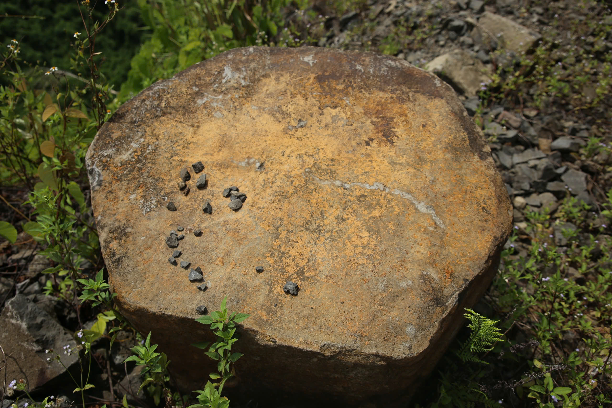 Vị trí dãy núi "đá đĩa” này cách đường Hồ Chí Minh khoảng 2 km. Trước đây, đá ẩn trong đất hoặc bị cây cối che khuất. Khi công thủy điện Nước Chè mở đường đến kênh dẫn nước xã Phước Mỹ cũ, nay là xã Phước Năng, làm phát lộ.