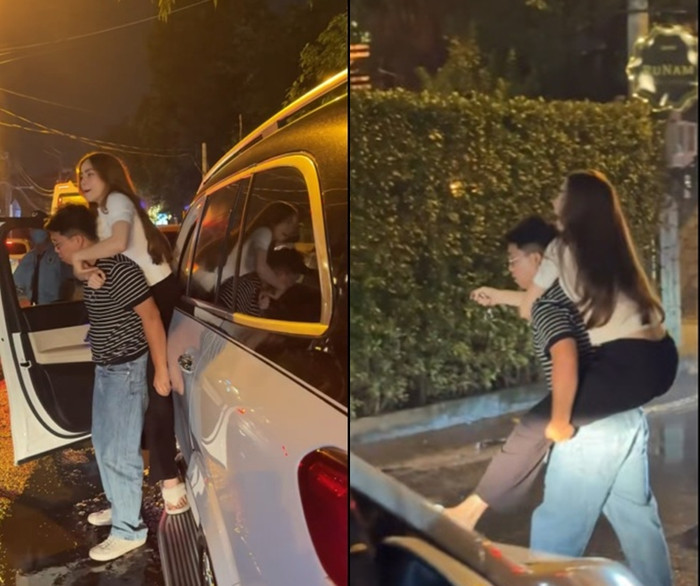 Hồ Ngọc Hà được một người cõng ra khỏi xe ô tô để băng qua đường. (Ảnh chụp màn hình)