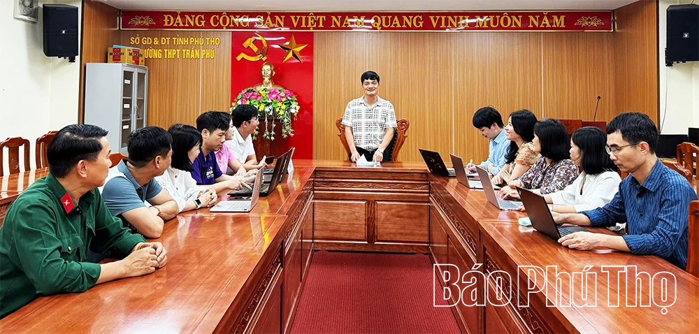 Thầy giáo Lê Quang Tuấn - Phó Hiệu trưởng Trường THPT Trần Phú trao đổi với các cán bộ, giáo viên về việc sửa đổi Thông tư 29.