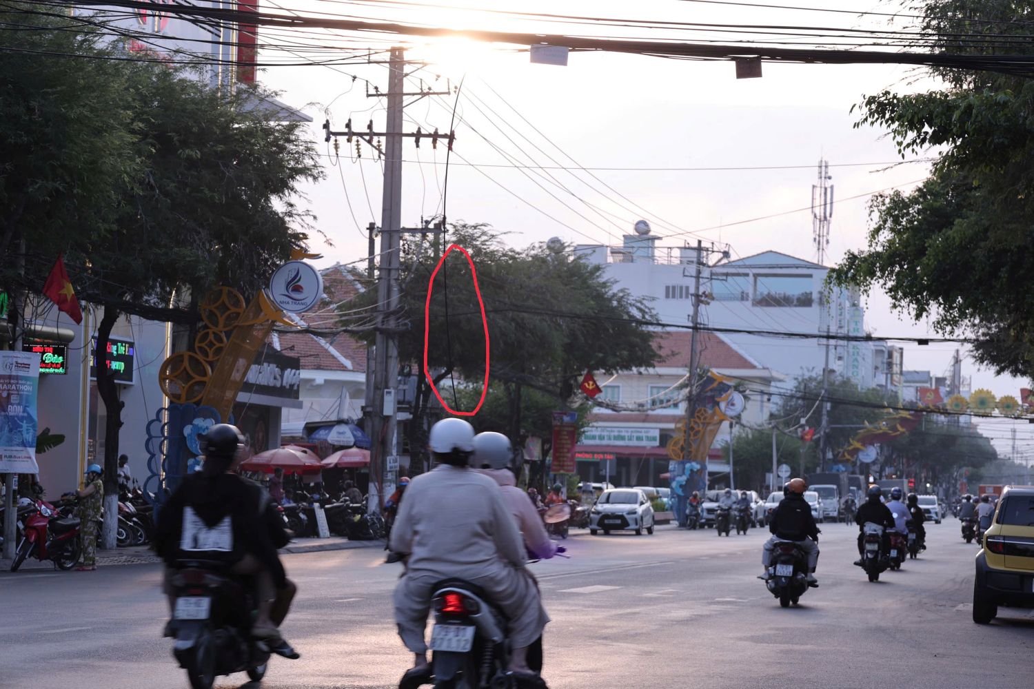 Nhiều ngày qua, trên đường Thái Nguyên, phường Nha Trang (đoạn ngã ba đường Thái Nguyên - đường Bà Triệu) có một đoạn dây viễn thông bị đứt, sà xuống gây nguy hiểm cho người tham gia giao thông (xem ảnh). Đây là đoạn đường có mật độ lưu thông rất đông vì gần Ga Nha Trang.