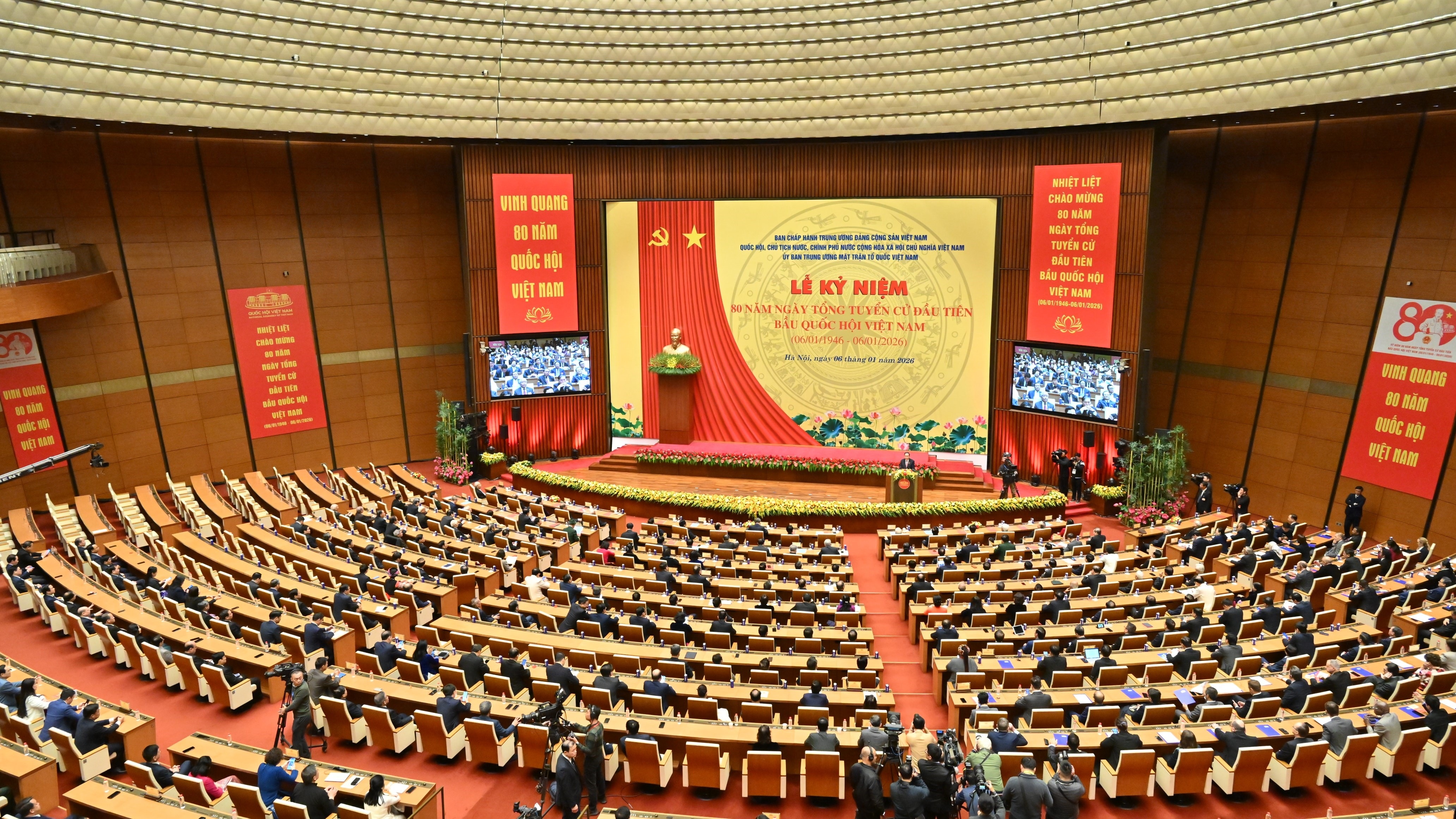 Quang cảnh Lễ kỷ niệm 80 năm Ngày Tổng tuyển cử đầu tiên bầu Quốc hội Việt Nam (6/1/1946 - 6/1/2026). Ảnh: Quang Khánh
