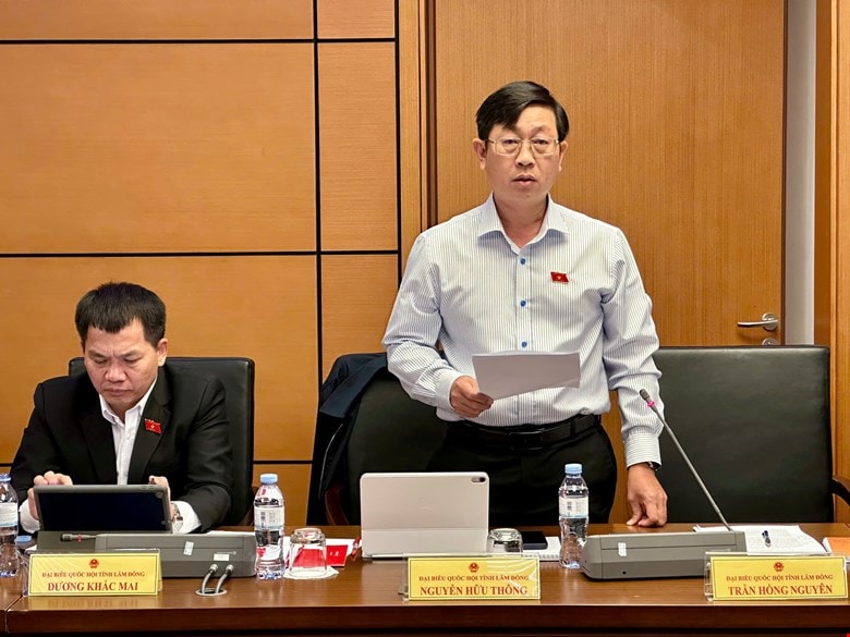 Phó trưởng Đoàn chuyên trách đoàn ĐBQH tỉnh Lâm Đồng Nguyễn Hữu Thông góp ý thảo luận