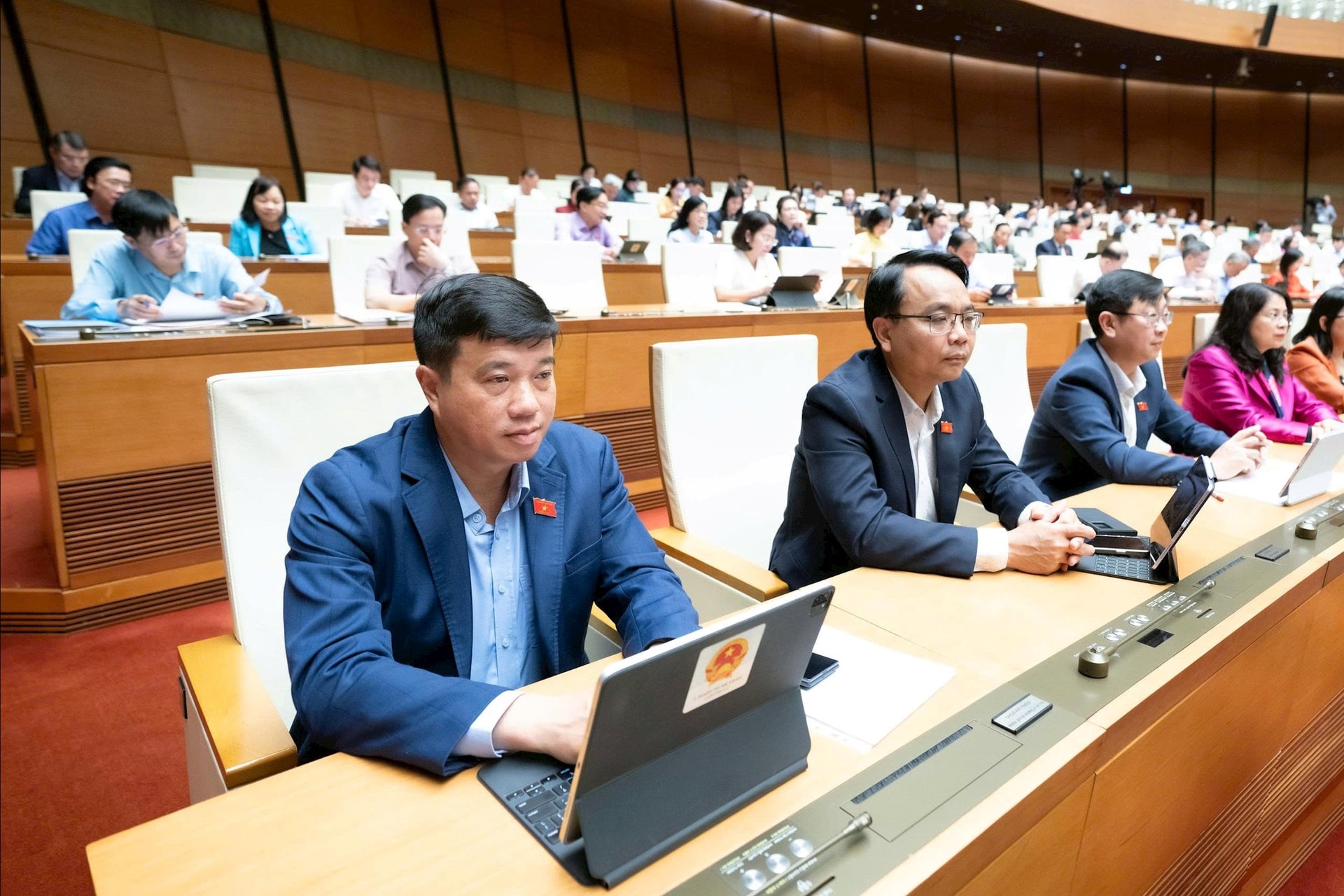 Đại biểu Trịnh Thị Tú Anh, Đoàn ĐBQH Lâm Đồng tham gia thảo luận tại hội trường