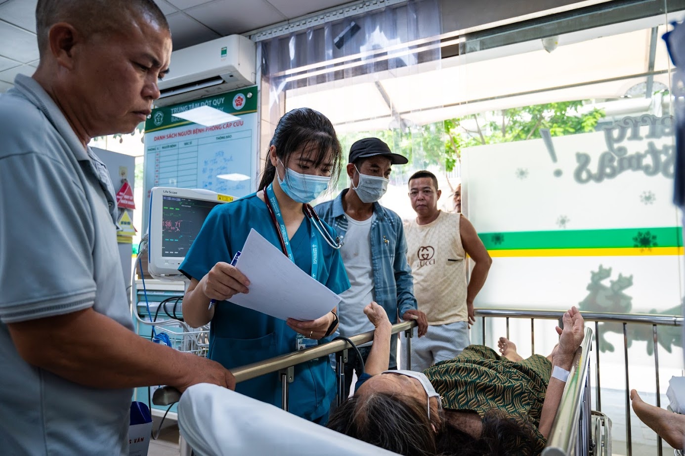 Bệnh nhân đến cấp cứu tại Trung tâm Đột quỵ, Bệnh viện Bạch Mai. Ảnh: Đinh Hà.