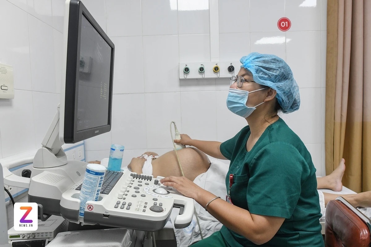 Bác sĩ Bệnh viện Phụ sản Trung ương siêu âm cho thai phụ. Ảnh: Việt Linh.