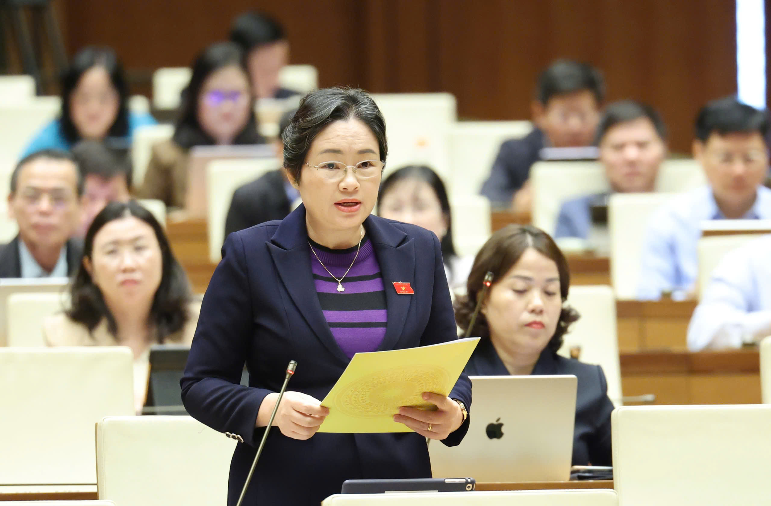 Đại biểu Lò Thị Luyến, Phó Trưởng đoàn chuyên trách, phụ trách Đoàn ĐBQH tỉnh phát biểu ý kiến tại phiên thảo luận.