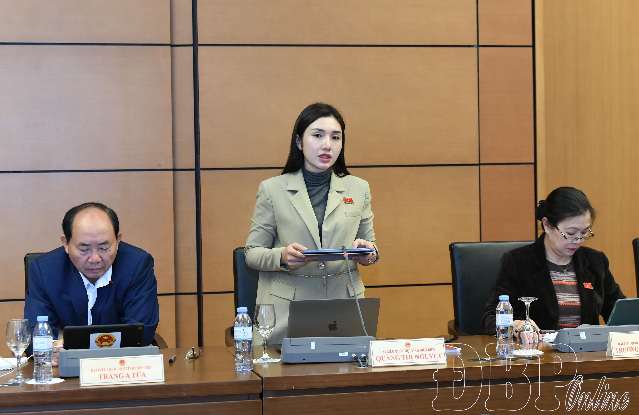Đại biểu Quàng Thị Nguyệt, ĐBQH tỉnh phát biểu ý kiến tại phiên thảo luận.