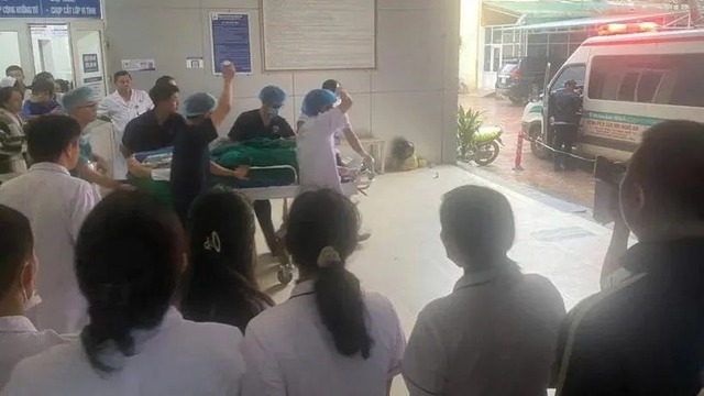 Các nạn nhân bị thương trong vụ việc hành hung NVYT tại BV Sản nhi Nghệ An lúc được chuyển tuyến trên.