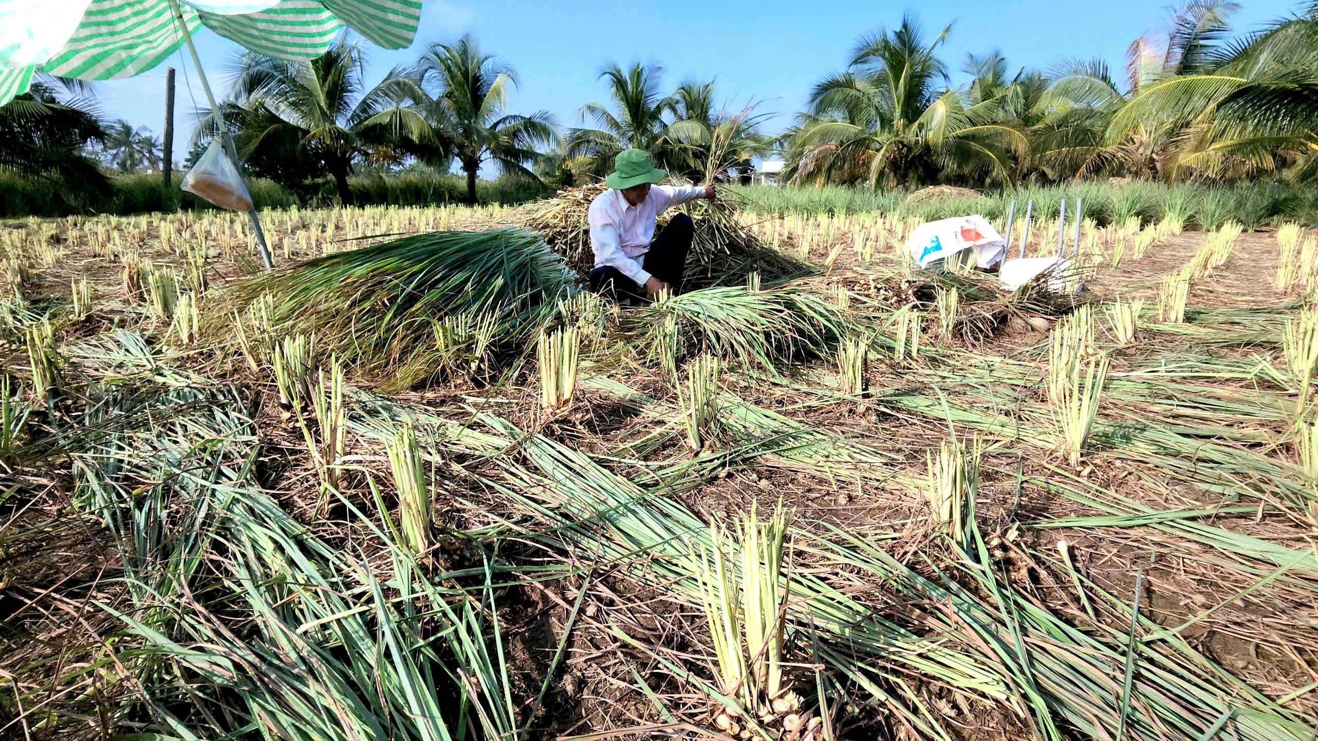 Nông dân xã Tân Phú Đông (Đồng Tháp) thu hoạch sả