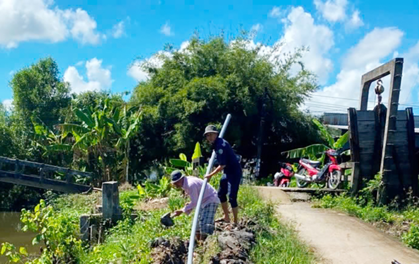 Công ty CP cấp nước Cà Mau lắp đường ống kéo nước về nông thôn.