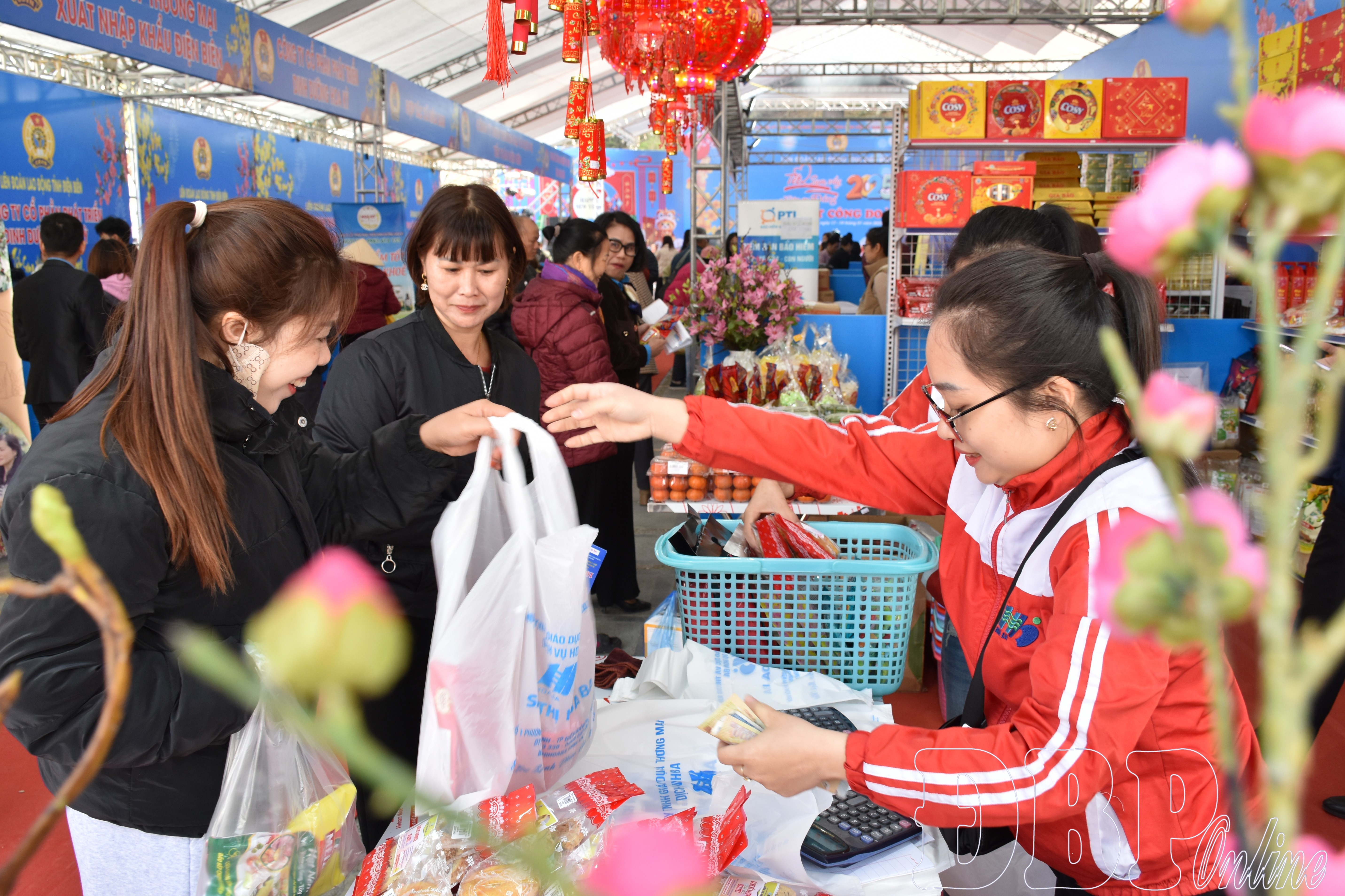 Người lao động mua sắm tại Chợ Tết Công đoàn 2025 do Liên đoàn Lao động tỉnh tổ chức.