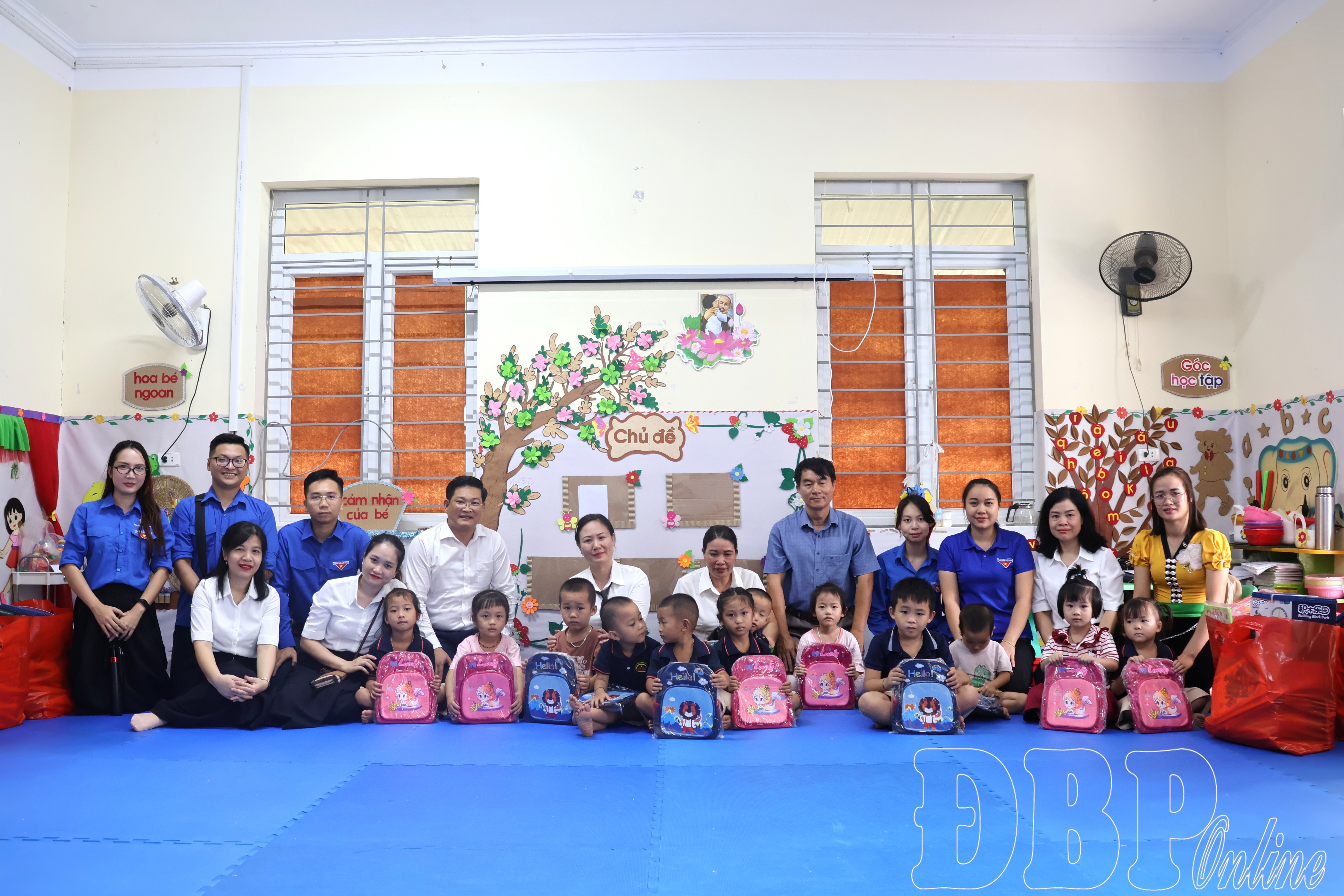 Đoàn công tác Học viện Tư pháp phối hợp với cấp ủy, chính quyền xã Nậm Nèn tặng quà cho học sinh Trường Mầm non Nậm Nèn.
