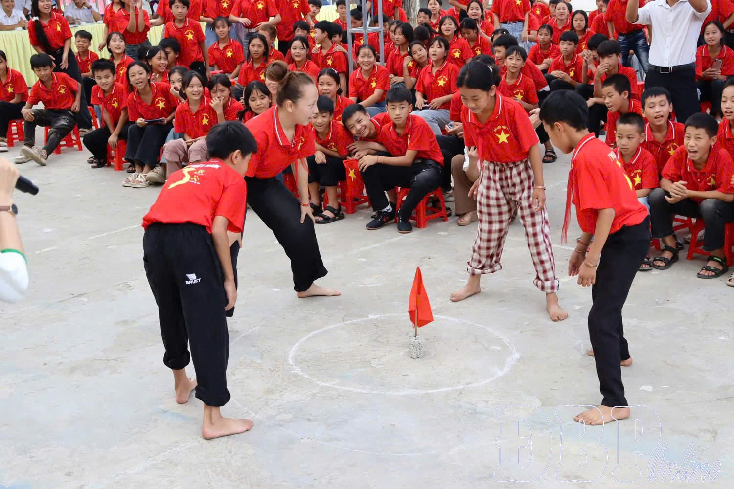 Học sinh Trường PTDTBT THCS Huổi Lèng tham gia trải nghiệm các trò chơi.
