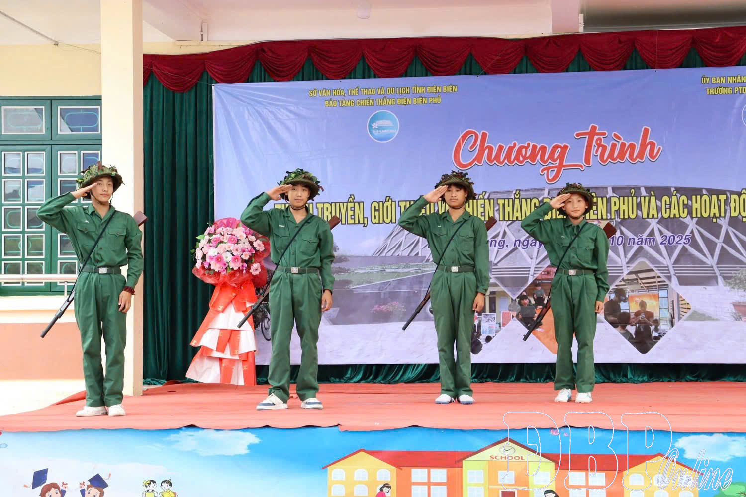 Tại Trường PTDTBT THCS Huổi Lèng, xã Mường Tùng, lần đầu tiên chương trình “Tuyên truyền, giới thiệu về Chiến thắng Điện Biên Phủ và các hoạt động trải nghiệm” được nhà trường phối hợp với Bảo tàng Chiến thắng Điện Biên Phủ tổ chức ngay trong khuôn viên trường.