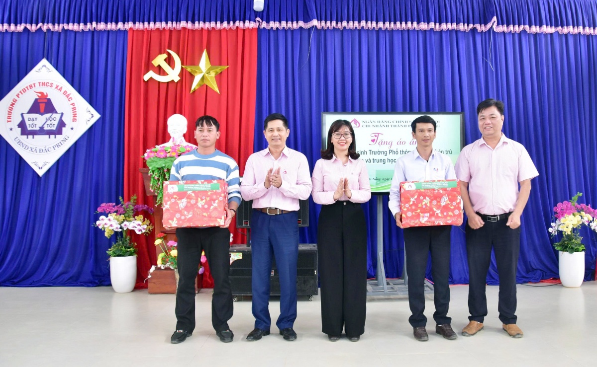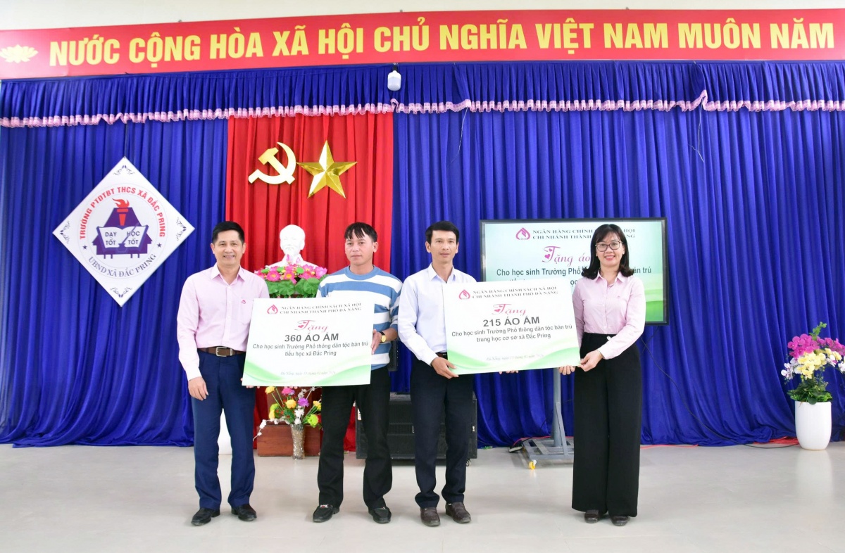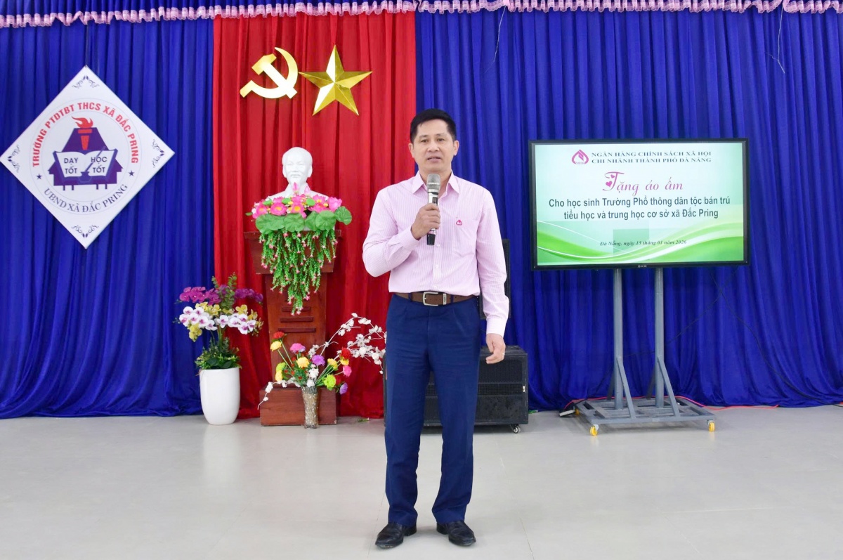 Phát biểu tại buổi trao quà, Giám đốc NHCSXH chi nhánh TP. Đà Nẵng – ông Đoàn Ngọc Chung chia sẻ đầy chân thành: Chúng tôi biết rằng, ở những vùng cao, vùng xa như Đắc Pring, các em nhỏ vẫn còn rất nhiều thiếu thốn, nhất là khi mùa đông về. Cái lạnh không chỉ khiến cuộc sống thêm vất vả mà còn ảnh hưởng đến việc học tập của các em. Những chiếc áo ấm hôm nay tuy nhỏ bé, nhưng chúng tôi hy vọng sẽ góp phần mang lại sự ấm áp, để các em cảm nhận được rằng mình luôn được yêu thương, được quan tâm và có thêm động lực đến trường mỗi ngày.