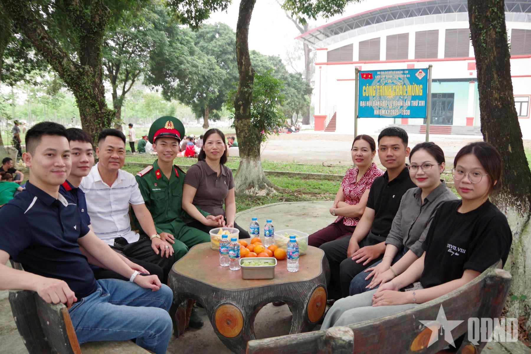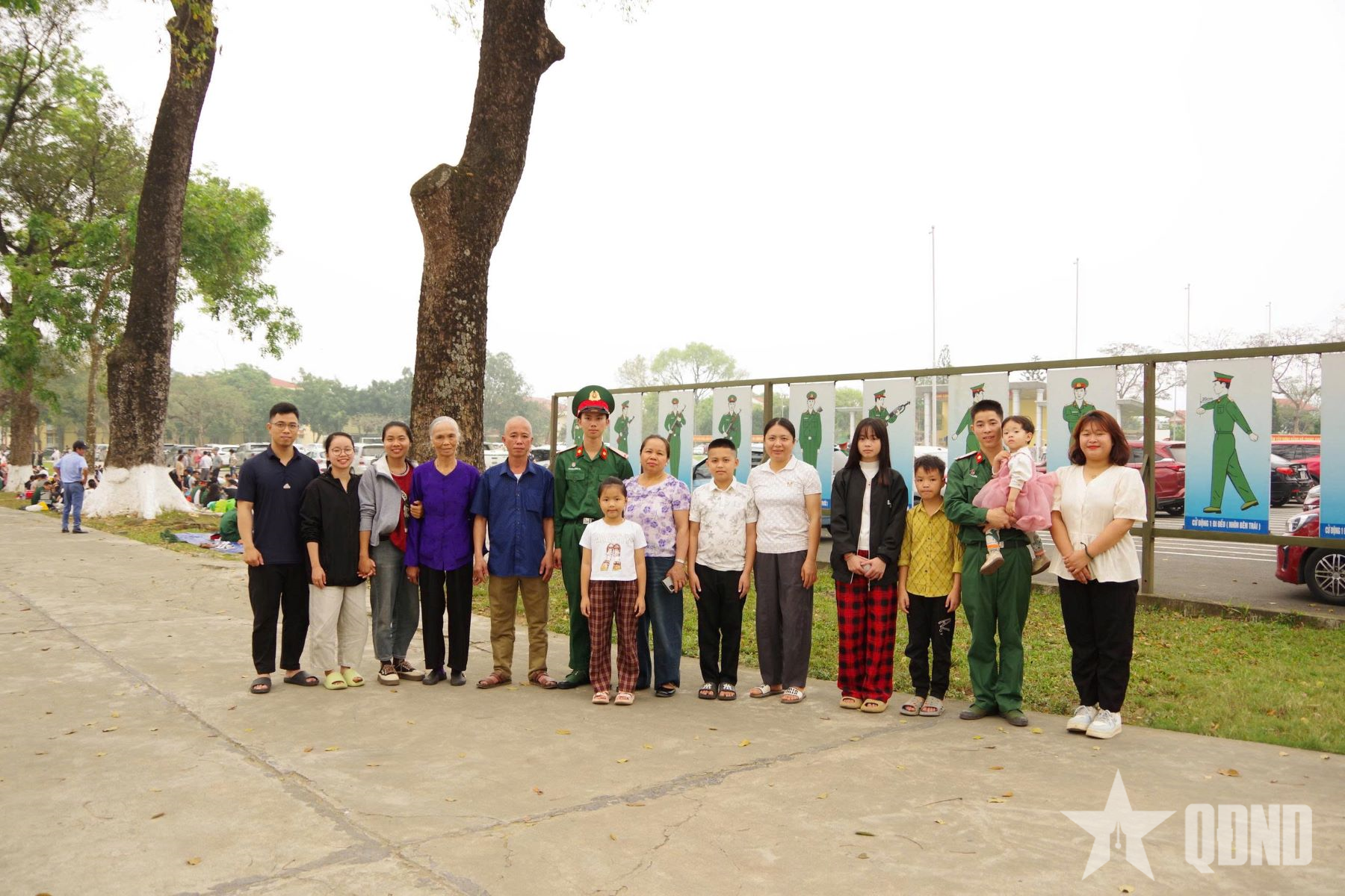 Gia đình chiến sĩ mới chụp ảnh chung tại đơn vị.