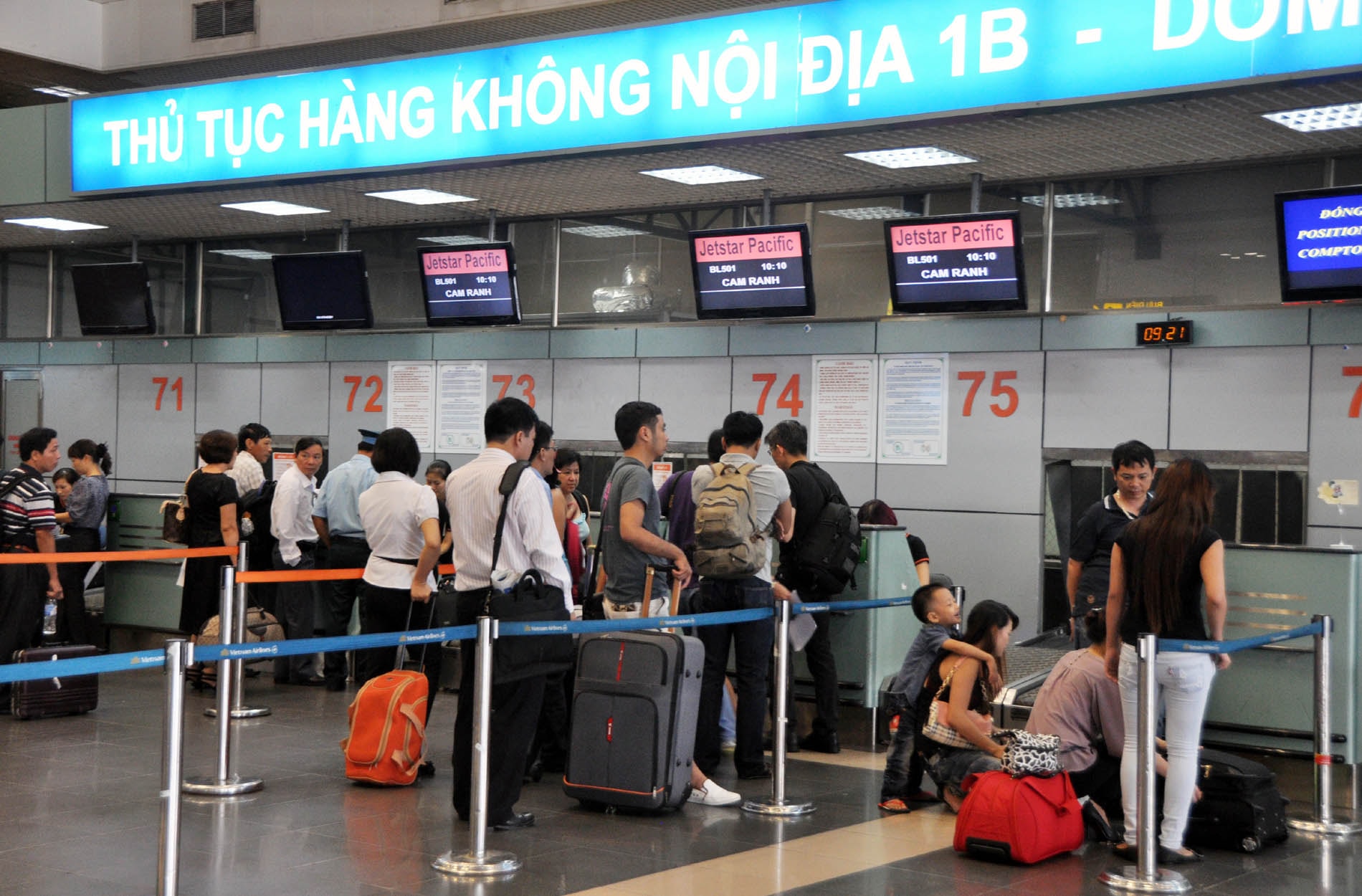 Du khách làm thủ tục nhận vé máy bay tại sân bay quốc tế Nội Bài. Ảnh: Hoài Nam