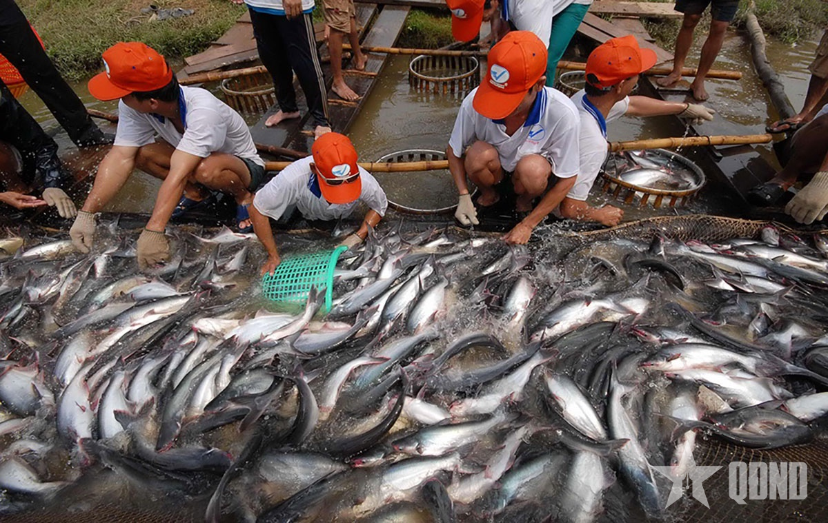 Người dân Đồng bằng sông Cửu Long thu hoạch cá tra.