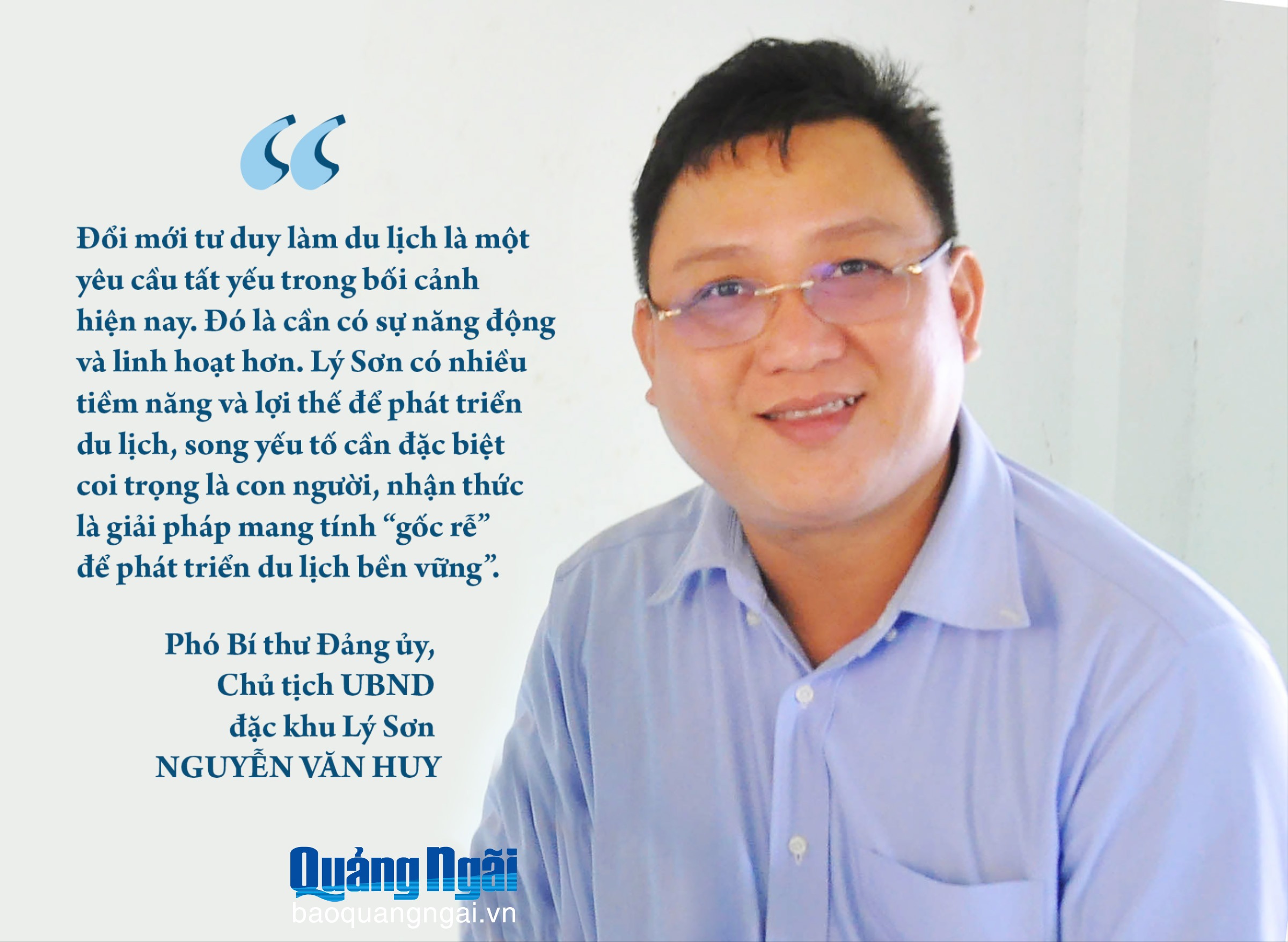 Có một điểm mới đầu tiên trong nhận thức về phát triển du lịch Lý Sơn là phải thay đổi tinh thần và thái độ phục vụ khách du lịch, để mỗi người dân Lý Sơn là một hướng dẫn viên du lịch. Đầu tư phát triển du lịch cộng đồng, du lịch sinh thái gắn với tài nguyên thiên nhiên và các giá trị văn hóa, lịch sử và sản phẩm nông nghiệp đặc trưng của Lý Sơn. Nhận thức ấy hoàn toàn phù hợp với điều kiện sẵn có và sẽ có của Lý Sơn, chỉ cần lãnh đạo Lý Sơn chuyển mình thực hiện những ý tưởng này, biến những suy nghĩ phù hợp ấy thành thực tế. Khi mỗi người dân là một hướng dẫn viên du lịch, nghĩa là du lịch đã trở thành trách nhiệm và khát vọng của cộng đồng, thì những sáng kiến mới, những suy nghĩ mới sẽ hình thành và được thể hiện. Du lịch trở thành câu chuyện lớn nhất của cả hòn đảo này, và của mỗi người dân trên đảo. Bấy giờ, rất cần những chủ trương đúng đắn, những thay đổi kịp thời của chính quyền địa phương làm sao đến với người dân nhanh nhất, giúp người dân chủ động nhất khi làm du lịch cộng đồng.