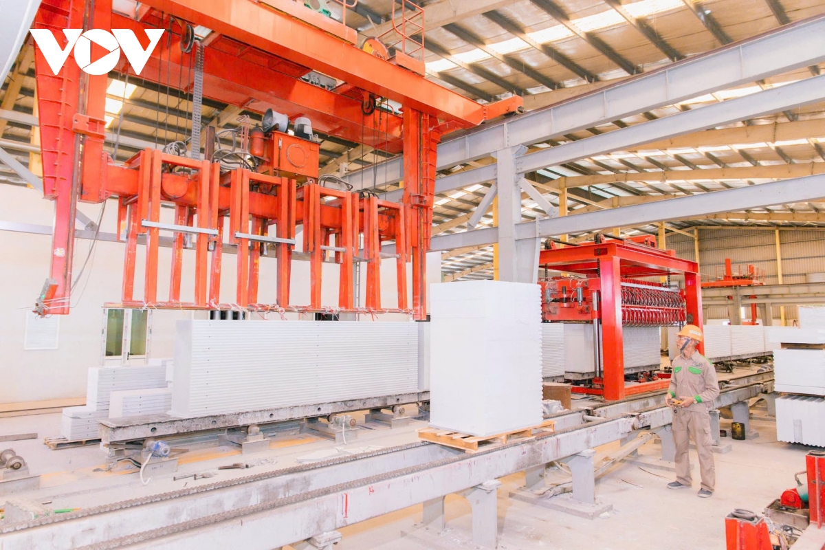 Dây chuyền sản xuất bê tông khí chưng áp, với sản phẩm chính là gạch bê tông khí chưng áp và tấm bê tông ALC của Công ty Cổ phần Sông Đà Cao Cường