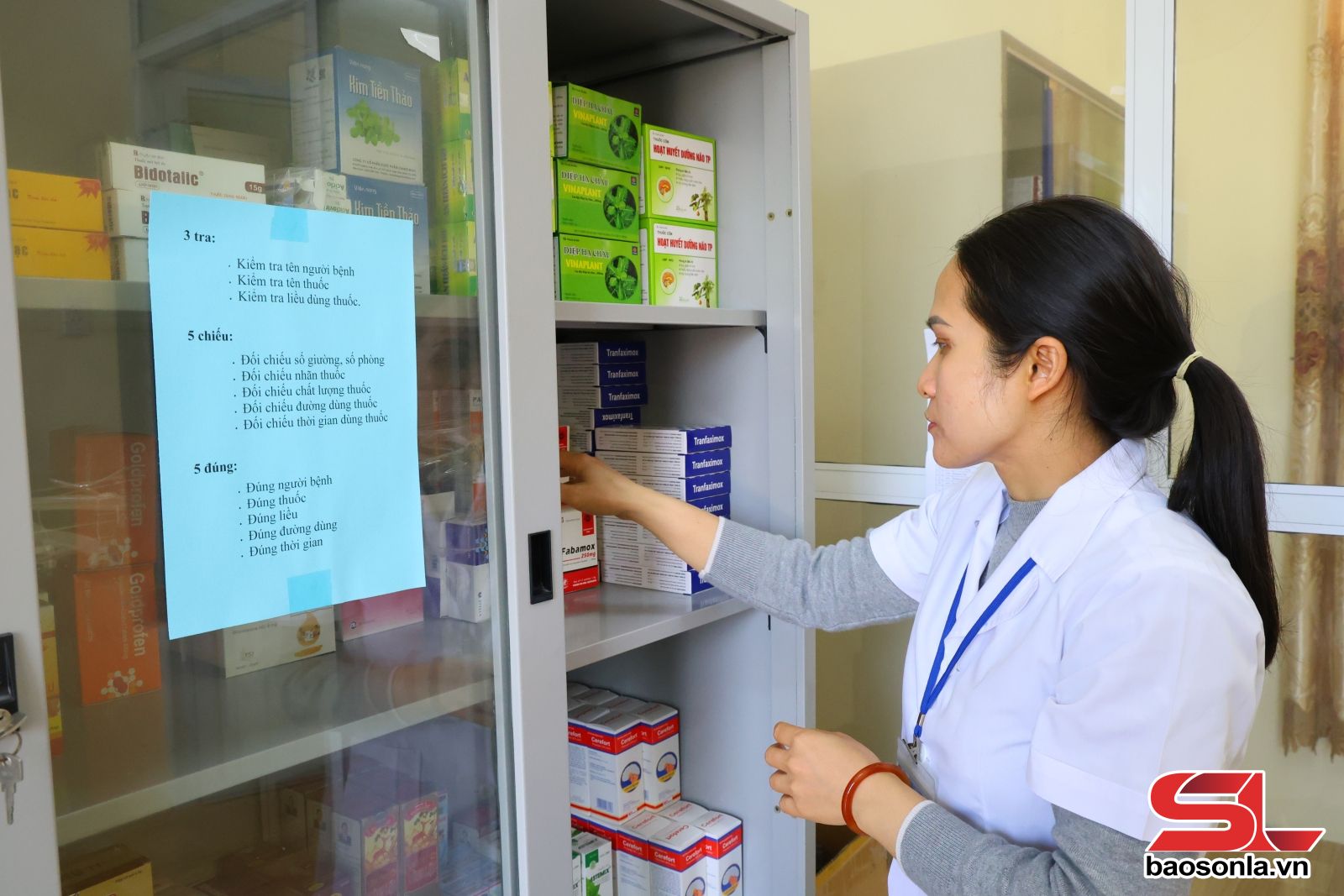 Cán bộ Trạm Y tế xã Bắc Yên chuẩn bị thuốc, vật tư y tế đảm bảo công tác chăm sóc sức khỏe cho nhân dân.