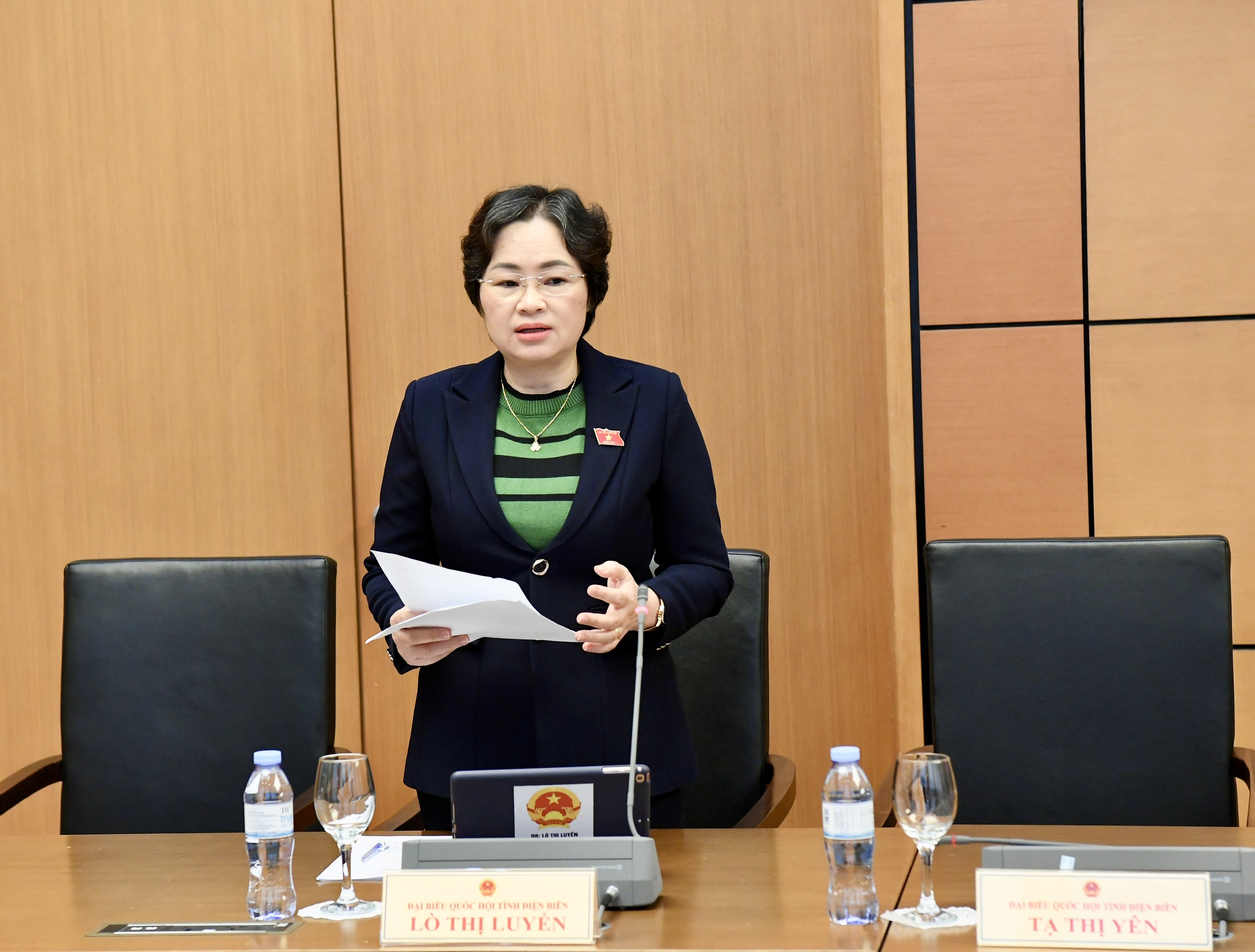 Đại biểu Lò Thị Luyến, Phó Trưởng đoàn chuyên trách, phụ trách Đoàn ĐBQH tỉnh phát biểu ý kiến tại phiên thảo luận.