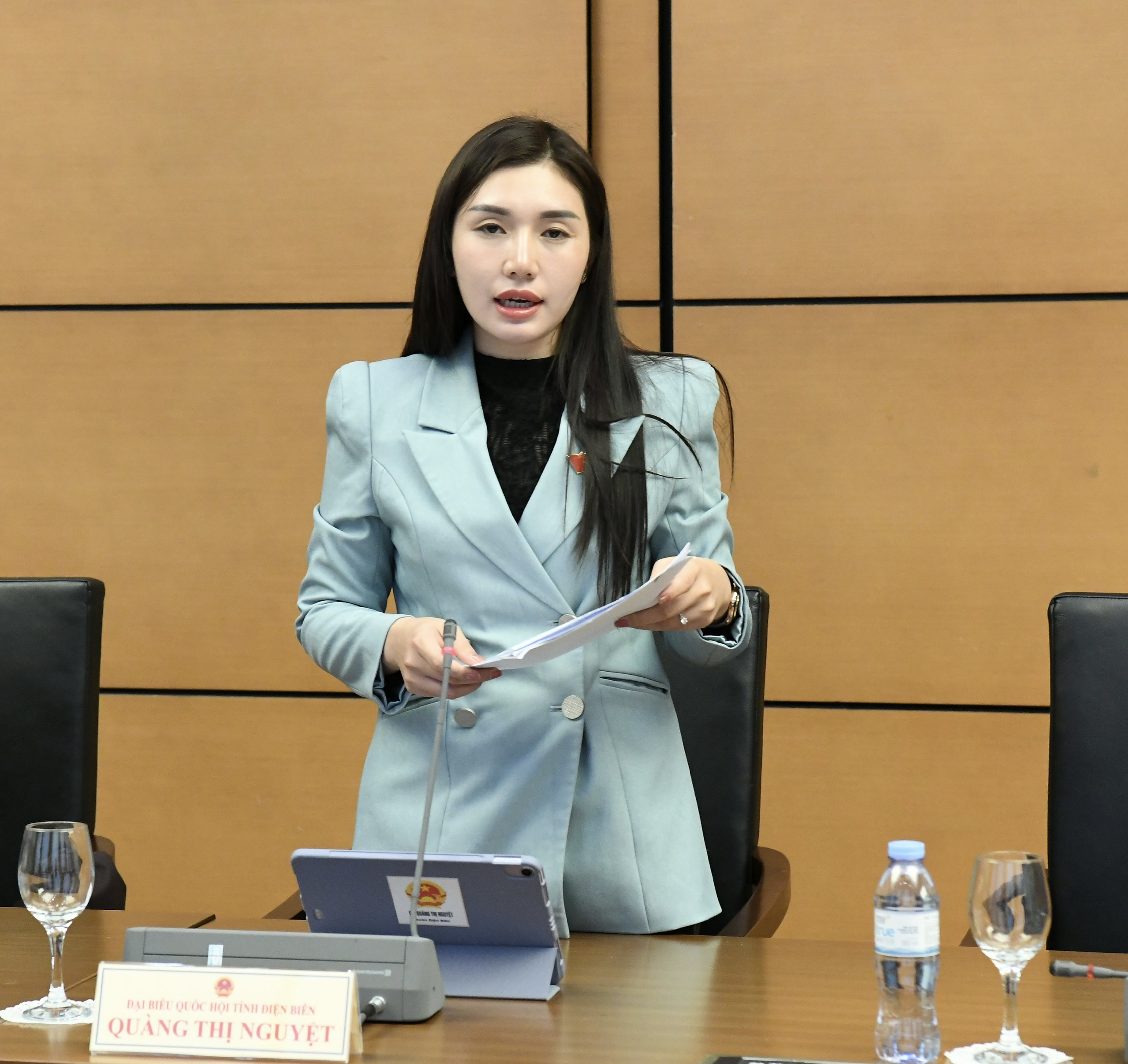 Đại biểu Quàng Thị Nguyệt, ĐBQH tỉnh phát biểu ý kiến tại phiên thảo luận.