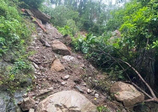 Ông Nguyễn Hữu Vinh, một trong những hộ bị ảnh hưởng đầu tiên, cho biết: “Sau nhiều đợt mưa lớn do cơn bão số 5 gây ra, sườn núi phía sau khu dân cư bắt đầu có dấu hiệu sạt lở, đất đá theo nước mưa trôi thẳng xuống vườn tược và nhà của các hộ dân.”