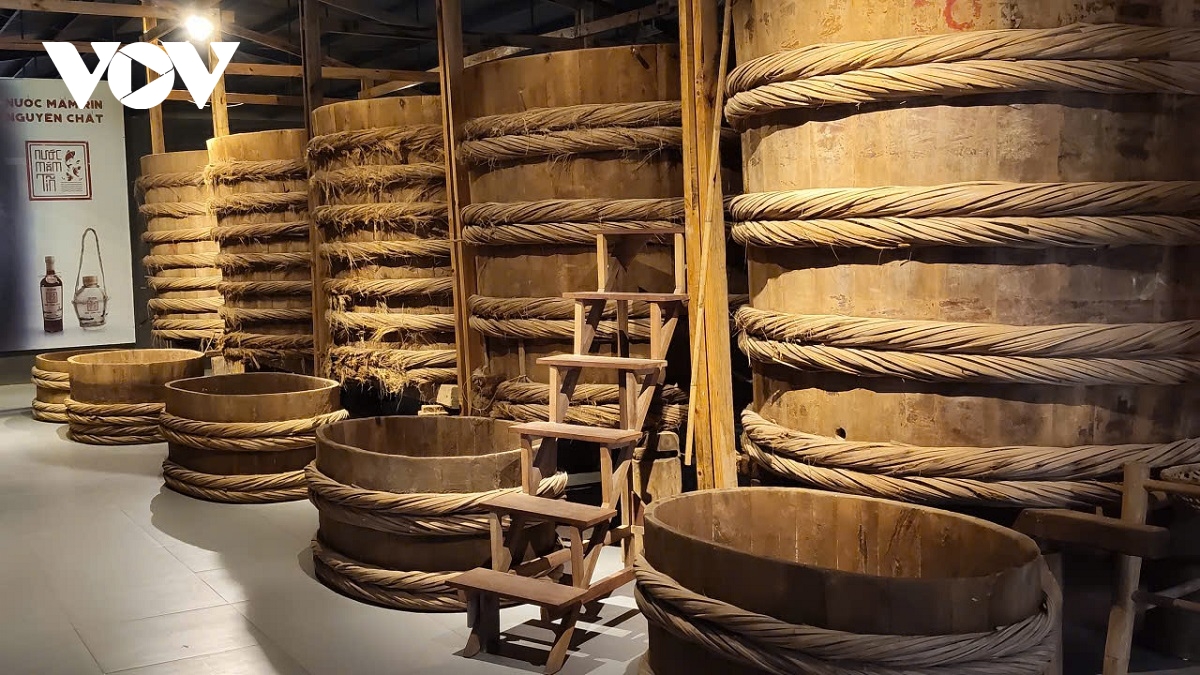 Các thùng lều ủ chượp nước mắm tại Bảo tàng Nước mắm Làng Chài Xưa ở thành phố Phan Thiết cũ