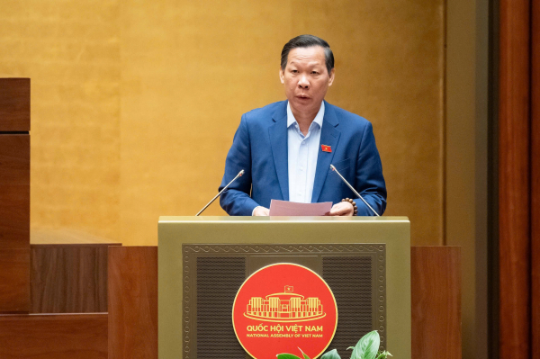 Chủ nhiệm Ủy ban Kinh tế - Tài chính của Quốc hội Phan Văn Mãi trình bày báo cáo thẩm tra.