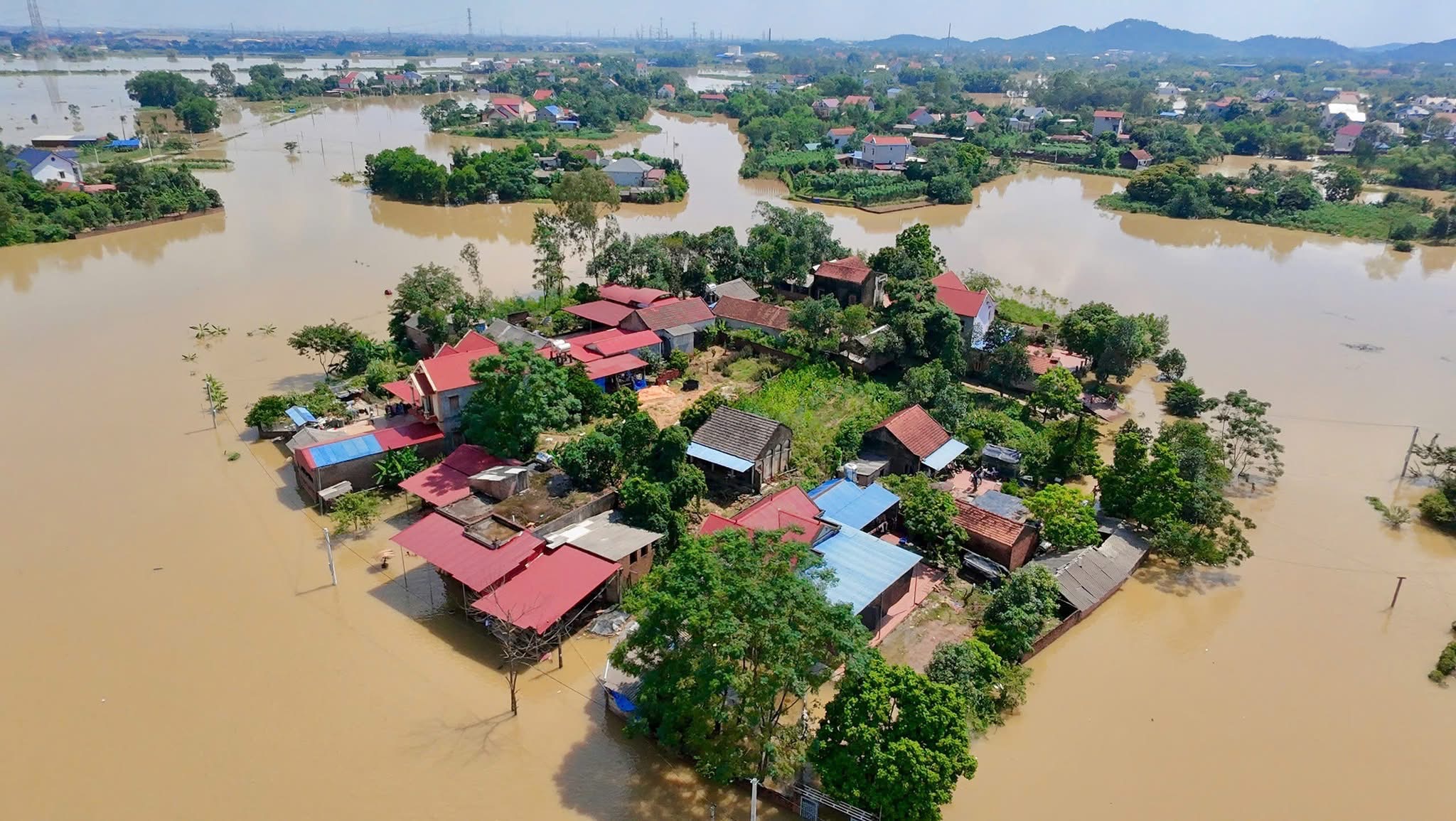 Nước vẫn mênh mông bao vây các thôn làng ở Đa Phúc và Trung Giã (TP Hà Nội). Ảnh: NAM NGUYỄN