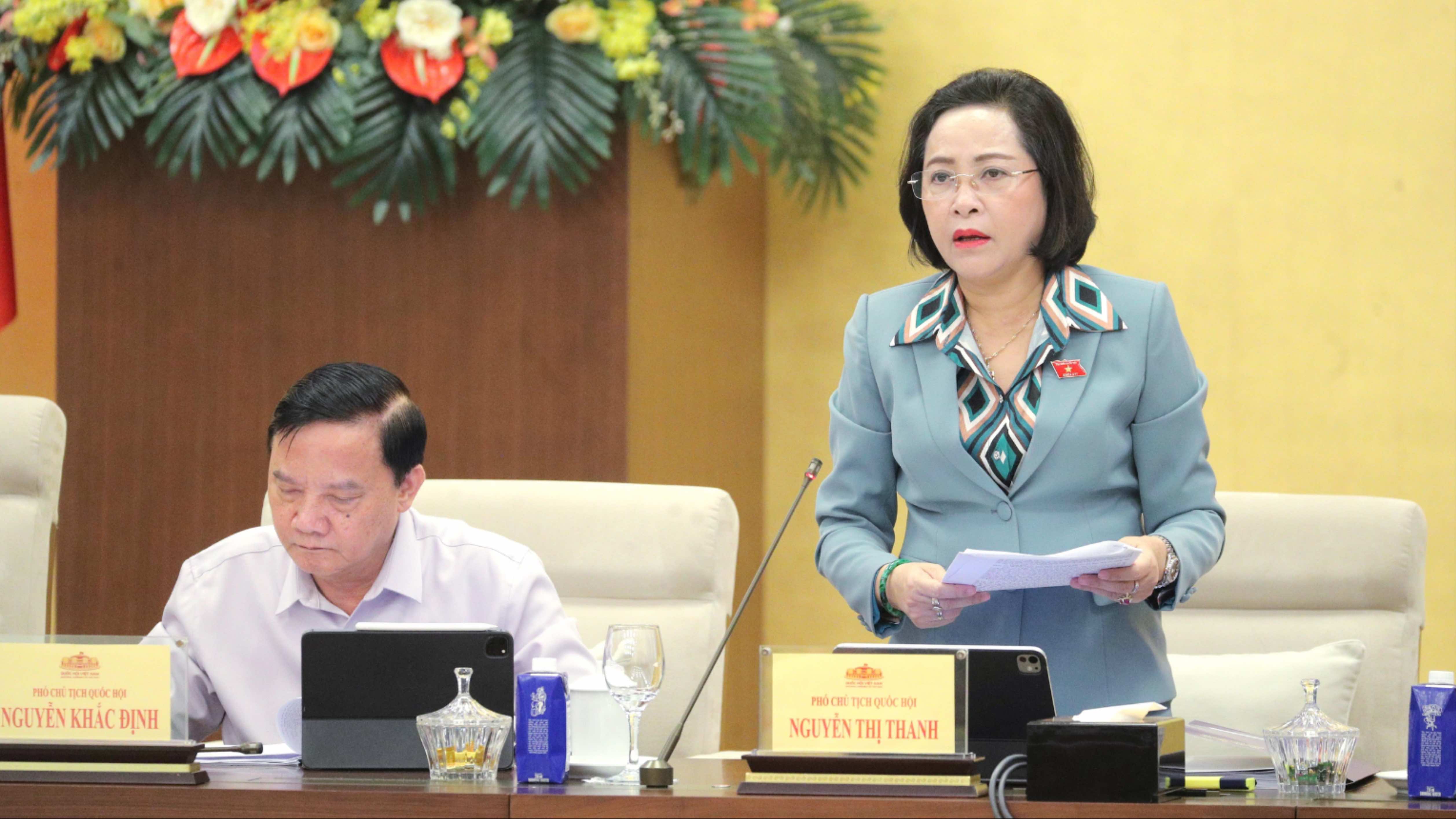 Phó Chủ tịch Quốc hội Nguyễn Thị Thanh tổng kết nội dung thảo luận
