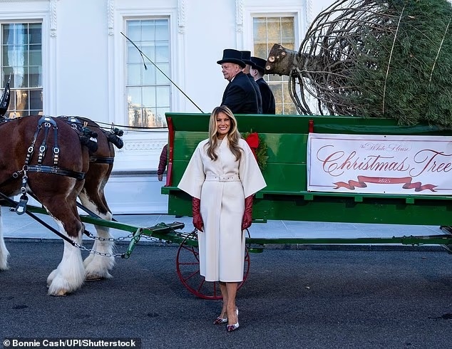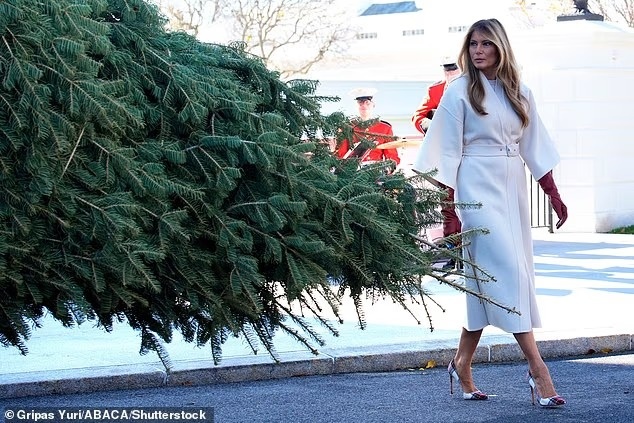 Đệ nhất phu nhân Melania Trump đã có mặt tại số 1600 Đại lộ Pennsylvania ở Washington, D.C. vào sáng 24/11 để chính thức khởi động mùa lễ hội. Bà xuất hiện đầy thanh lịch khi đón cây thông Noel của Nhà Trắng năm nay. Ảnh: Gripas Yuri/ ABACA/ Shutterstock.