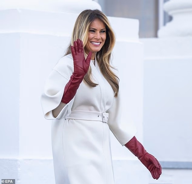Đệ nhất phu nhân Mỹ khoác một chiếc áo măng tô dài màu kem giản dị, được thắt gọn ở eo bằng dây đai. Ảnh: EPA.