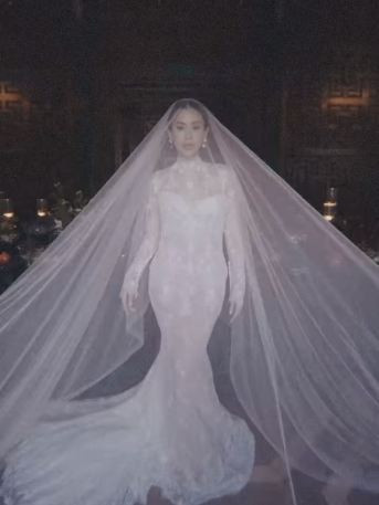 Cô dâu diện váy cưới theo nhiều phong cách, từ chiếc váy ren cúp ngực đính ngọc trai đầy kiêu sa, đến thiết kế bồng bềnh, xòe rộng cùng khăn voan dài, và cả váy ôm sát, kín đáo với voan trùm đầu ấn tượng. (Ảnh: IGNV)