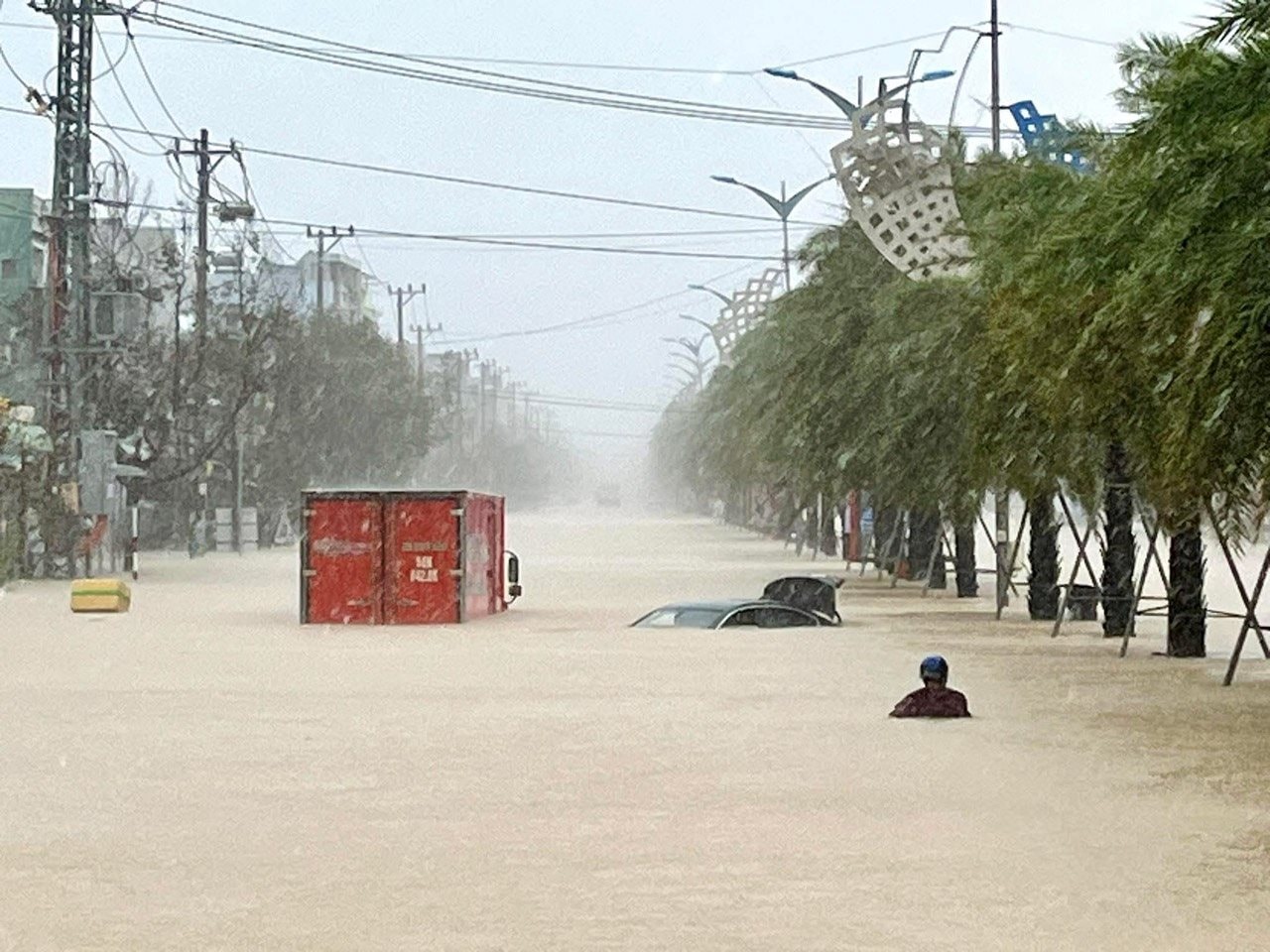 Đê sông Luật Lễ bị vỡ, nước từ thượng nguồn ào về khiến nhiều khu vực tại xã Tuy Phước và các phường dọc sông Hà Thanh, ngập sâu hơn 1m.