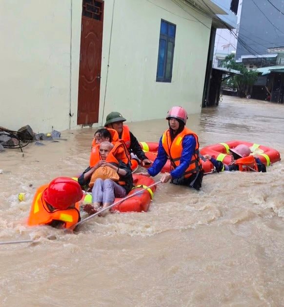 Lực lượng chức năng đưa người dân đến nơi an toàn.