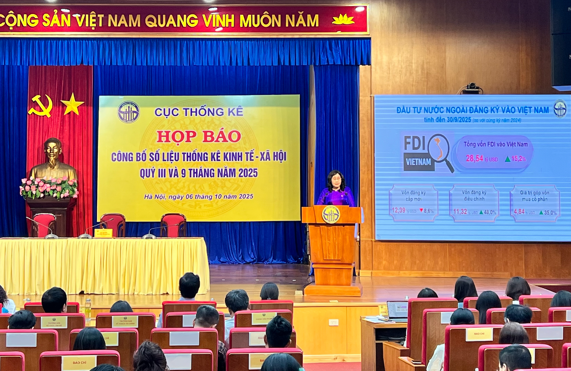 Tại họp báo tình hình KT-XH quý 3/2025 ngày 6.10, Cục Thống kê cho hay Tổng sản phẩm trong nước (GDP) trong quý này ước tính tăng 8,23% so với cùng kỳ năm trước. Còn GDP 9 tháng năm 2025 ước tăng 7,85% so với cùng kỳ năm trước, chỉ thấp hơn tốc độ tăng 9,44% cùng kỳ năm 2022.