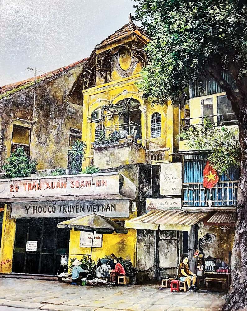 Hà Nội là thành phố của ký ức, nơi những lớp làng nghề, đình chùa, phố phường chồng lên nhau như lớp địa tầng văn hóa sống. Tranh: họa sĩ trẻ Trần Nam Long
