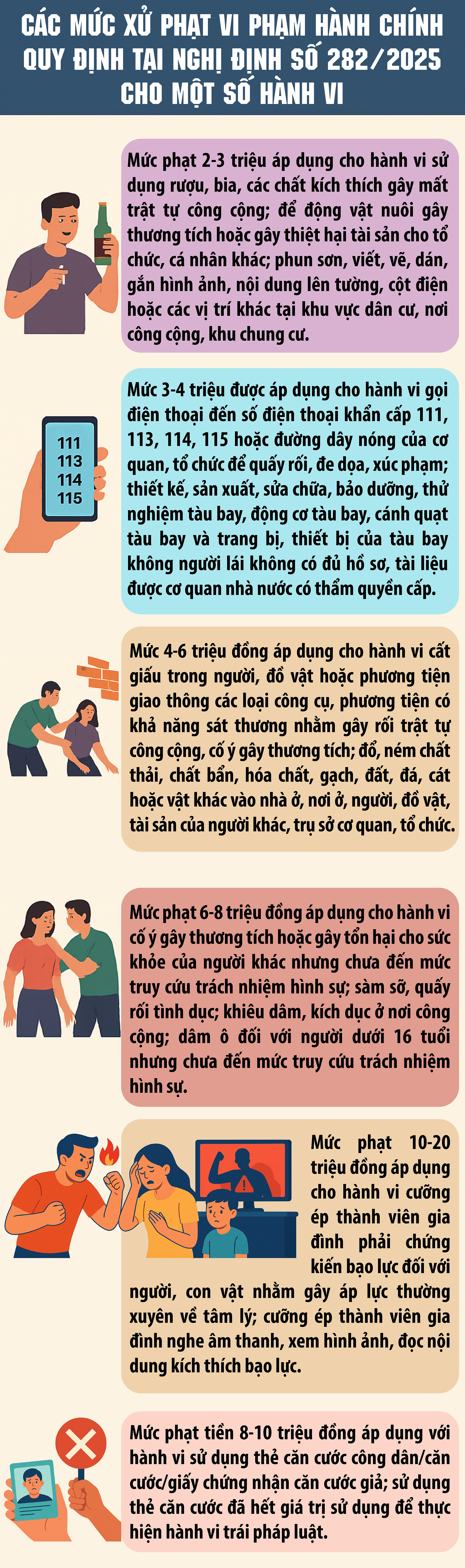 Nghị định số 282/2025/NĐ-CP ngày 30/10/2025 quy định xử phạt vi phạm hành chính trong lĩnh vực an ninh, trật tự, an toàn xã hội; phòng, chống tệ nạn xã hội; phòng, chống bạo lực gia đình sẽ có hiệu lực từ 15/12.