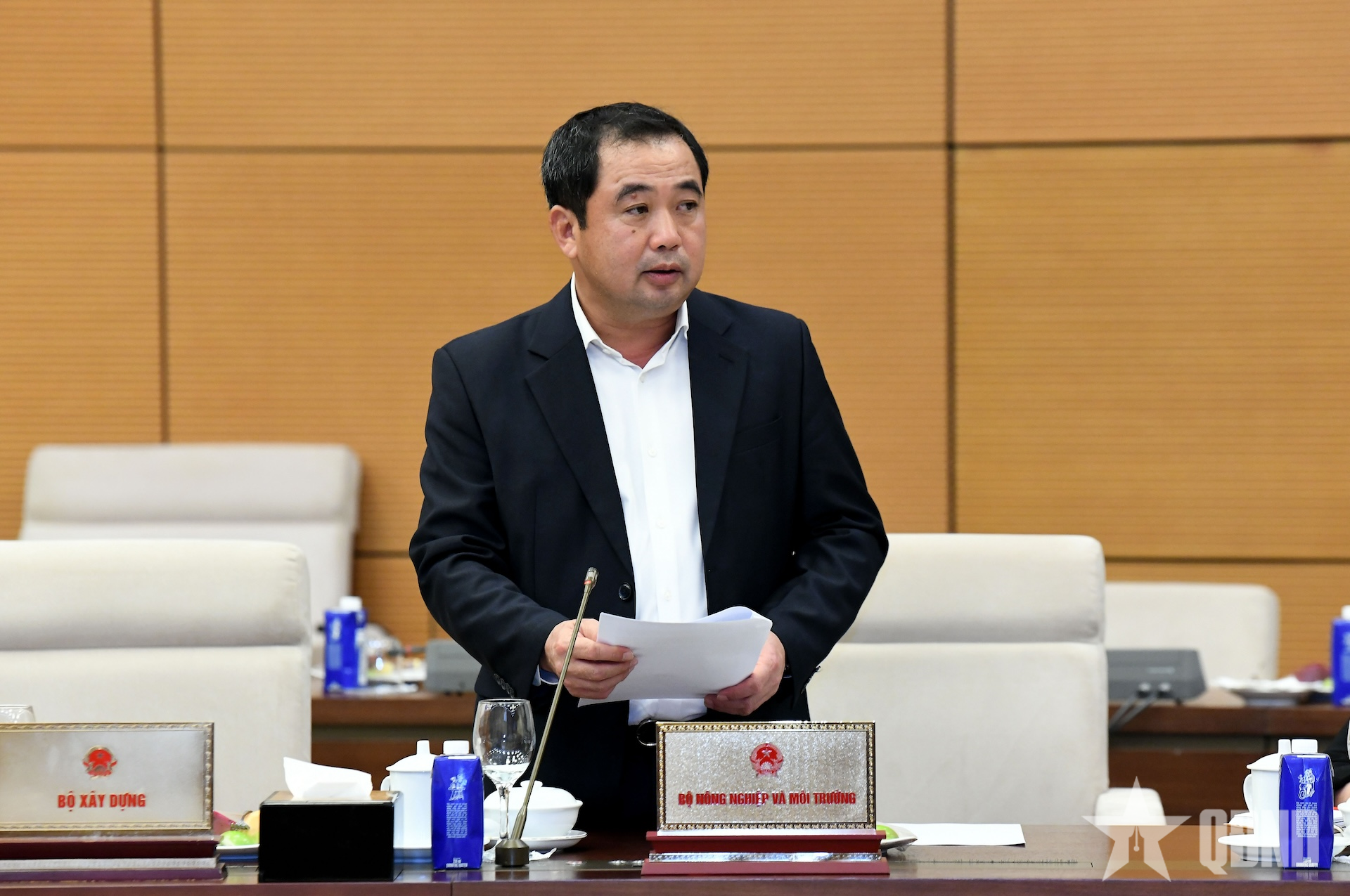 Bộ trưởng Bộ Nông nghiệp và Môi trường Trần Đức Thắng báo cáo tại phiên họp. Ảnh: LÂM HIỂN
