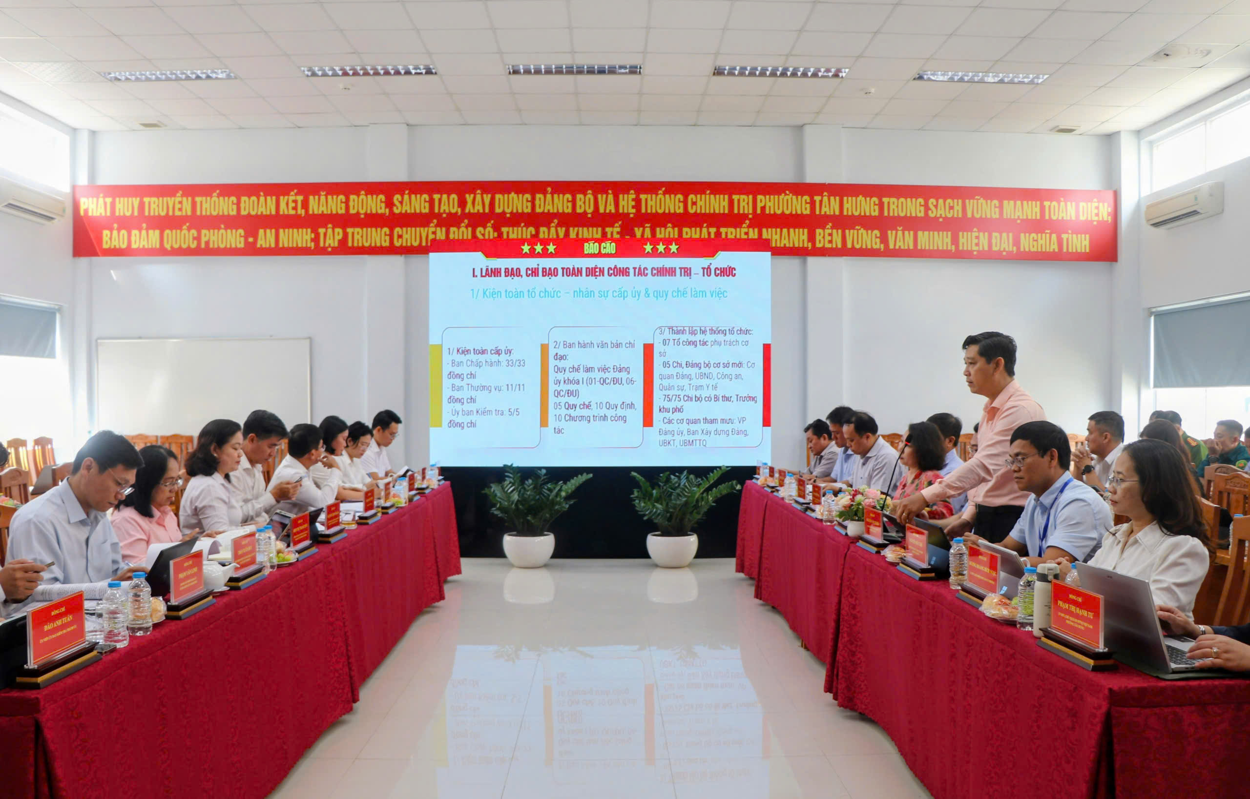 Ngày 23-10, tổ công tác số 5 do đồng chí Nguyễn Thị Mỹ Hằng, Ủy viên Ban Thường vụ Thành ủy, Trưởng Ban Nội chính Thành ủy TPHCM, làm tổ trưởng, làm việc với phường Tân Hưng và phường Tân Thuận về kết quả thực hiện Kế hoạch 249-KH/UBKTTW của Ủy ban Kiểm tra Trung ương.