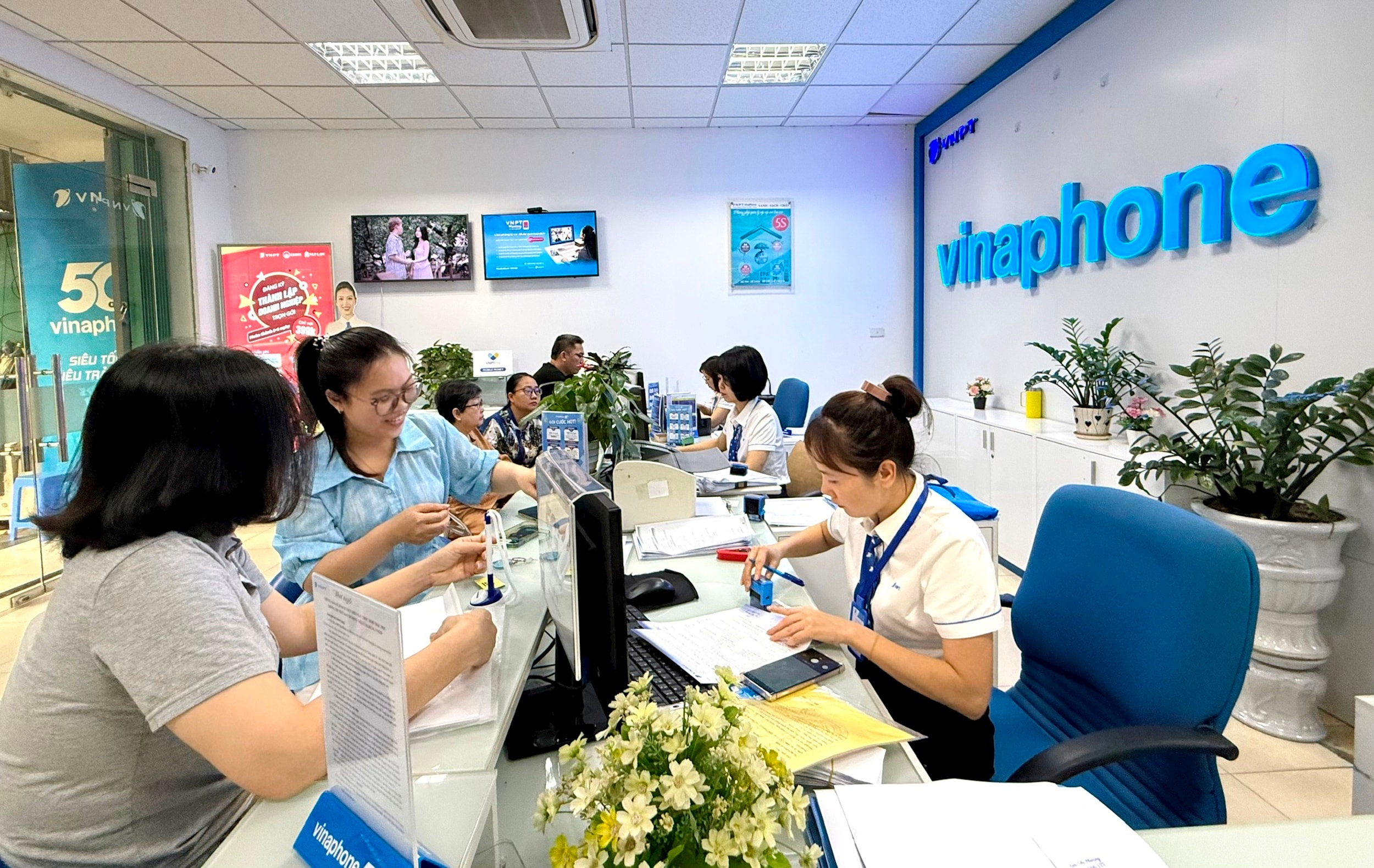 Các cửa hàng giao dịch của VNPT tại Hà Nội phục vụ khách hàng đăng ký dịch vụ và xác thực thông tin thuê bao. Ảnh: Trần Yến