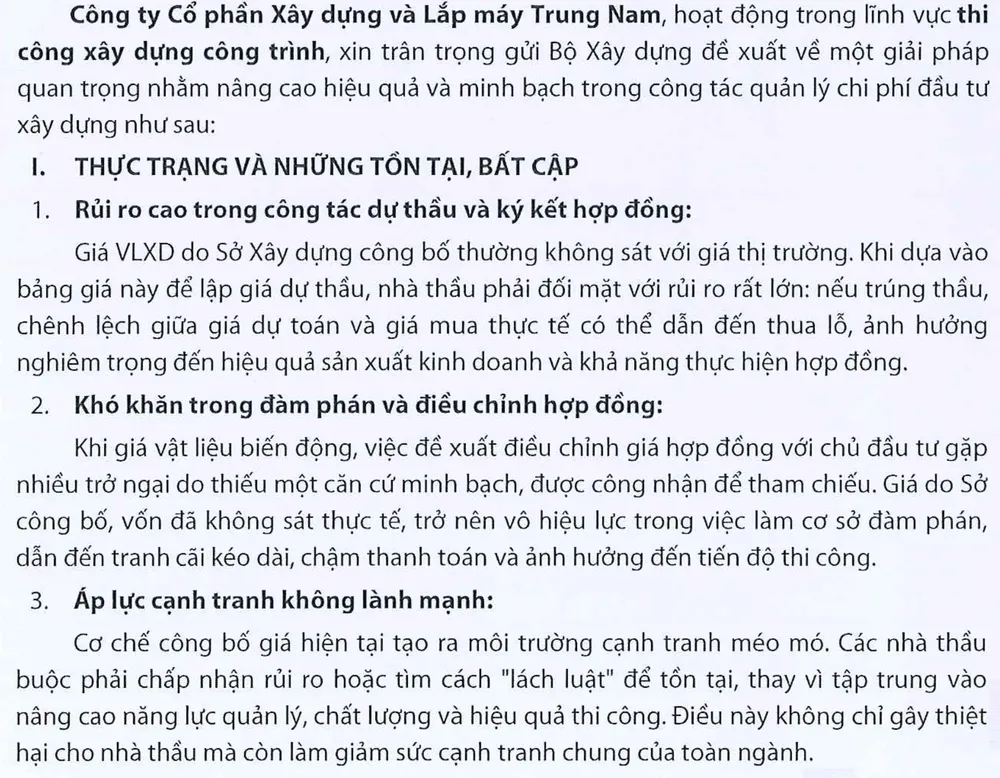 Công ty cổ phần Xây dựng và lắp máy Trung Nam kiến nghị lên Bộ Xây dựng. Ảnh: V.LONG