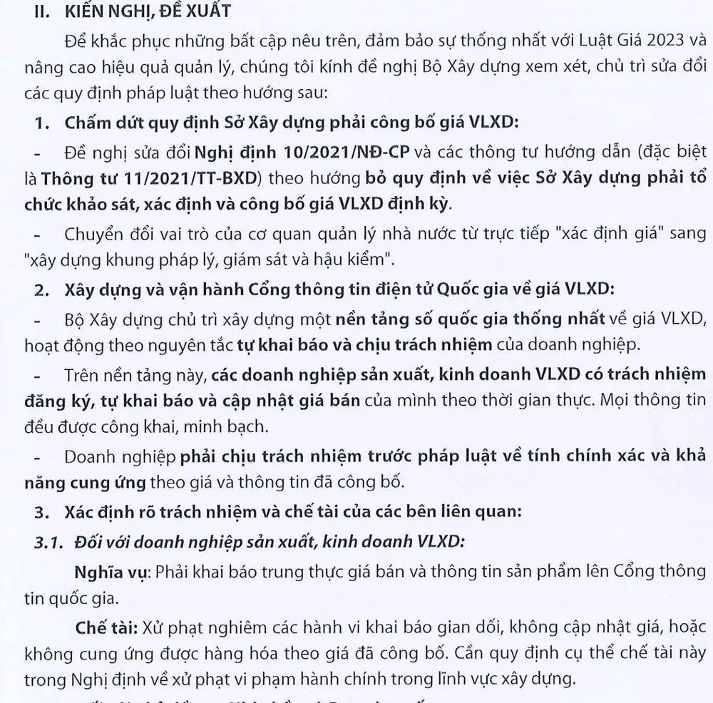 Một kiến nghị quan trọng được nêu trong báo cáo là cần bổ sung trực tiếp vào khoản 1 Điều 14 cụm từ “xây dựng số liệu đầu vào cho giá đầu tư xây dựng thống nhất toàn quốc” ngay sau nhiệm vụ “cập nhật định mức, giá xây dựng và chỉ số giá xây dựng”. Đây được coi là điểm cốt lõi của việc chuyển đổi từ “công bố giá” sang “cập nhật giá”.