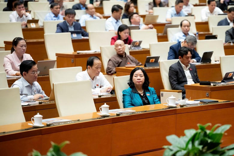 Chủ tịch UBTƯ MTTQ Việt Nam Bùi Thị Minh Hoài tham dự phiên thảo luận (Ảnh: Quang Vinh)