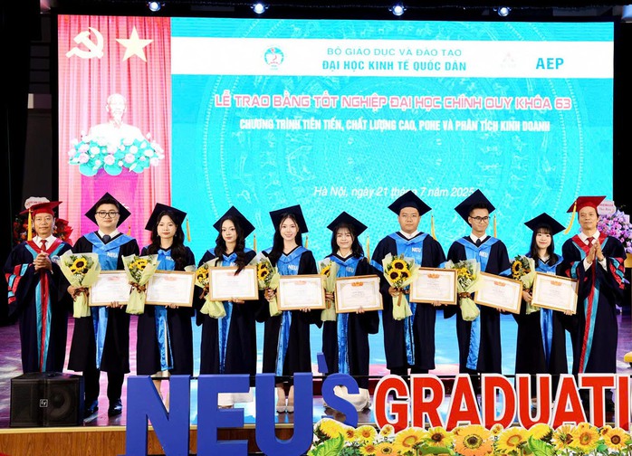 Lễ trao bằng tốt nghiệp cho các tân cử nhân của Đại học Kinh tế Quốc dân tháng 7-2025 Ảnh: ThÙY Linh