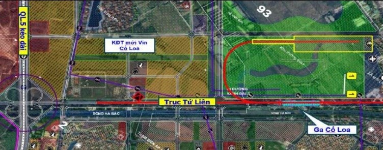 TP. Hà Nội: Tuyến xuất phát từ ga Cổ Loa, đi theo giải phân cách giữa đường dẫn nối cầu Tứ Liên, sau đó vào hành lang giữa đường điện 500kV và đường song hành Vành đai 3.